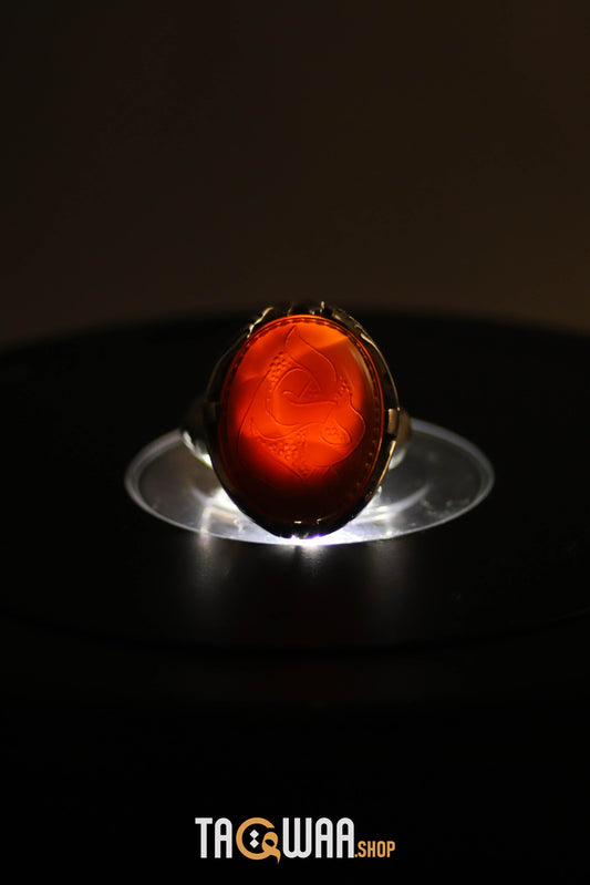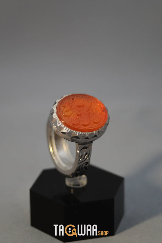 Timeless Men's Silver Ring with Yemeni Orange Aqeeq – Engraved with 'وَمَنْ يَتَوَكَّلْ عَلَى اللَّهِ فَهُوَ حَسْبُهُ