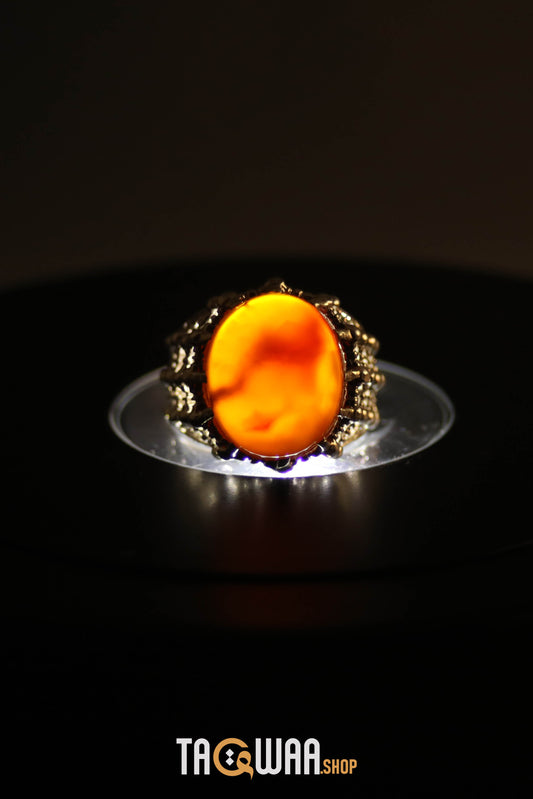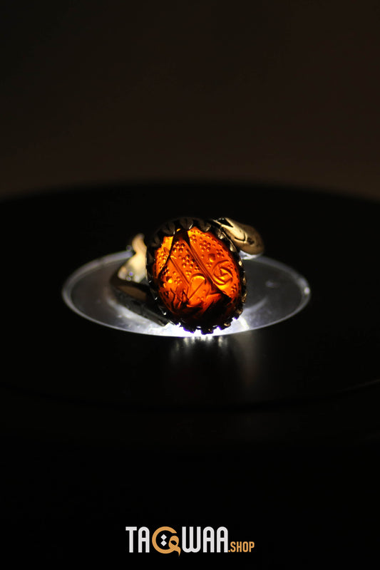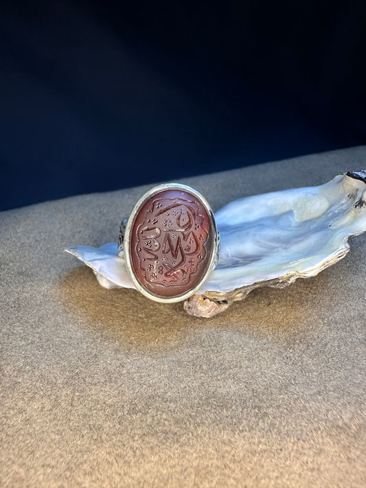 Silver Ring with Orange Yemeni Agate and Imam Hussain Shrine-Inspired Design