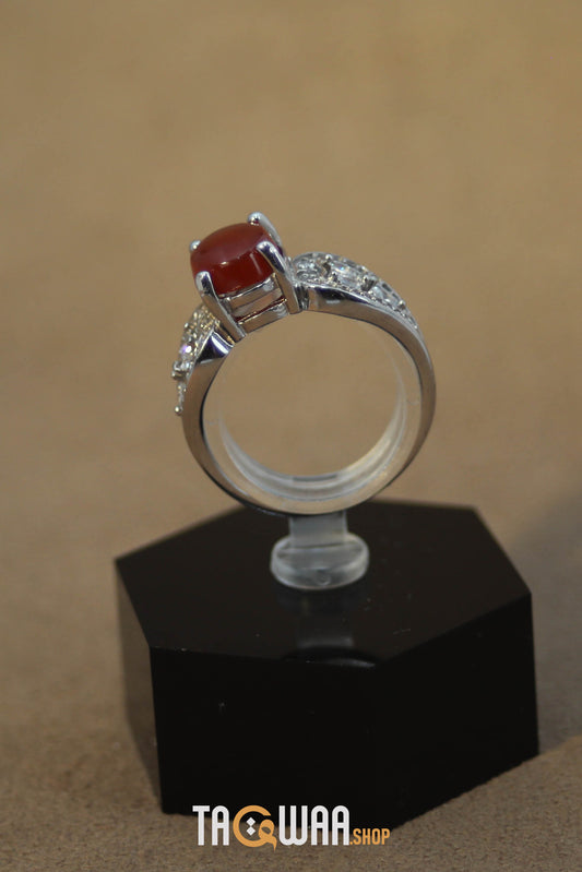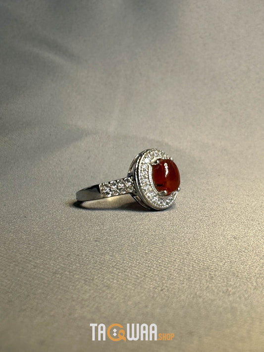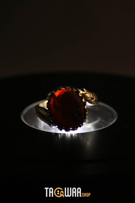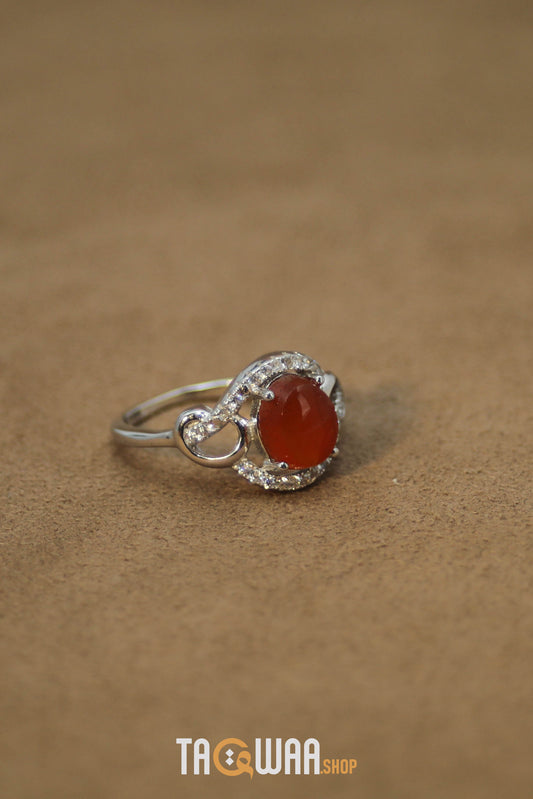 Silver Ring with Red Yemeni Agate – Featuring 'YA ALI' Inscription