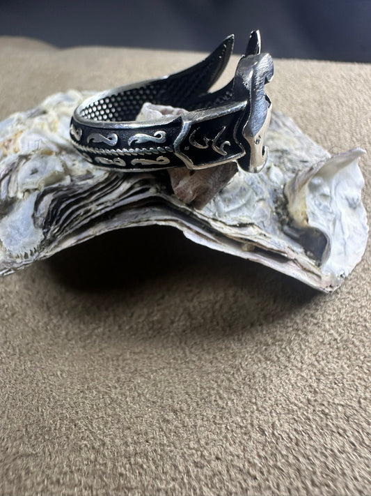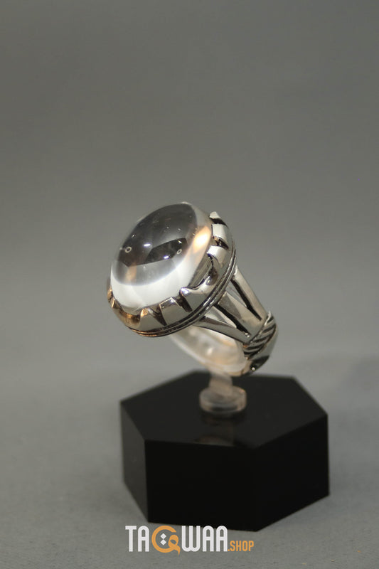 Silver Ring with Brown Yemeni Agate and Imam Hussain Shrine-Inspired Design
