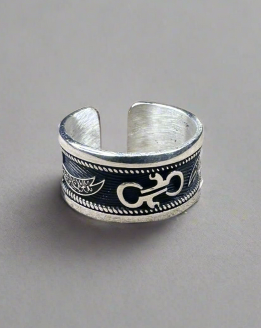 Timeless Men's Silver Ring with Yemeni Brown Aqeeq – 'ALI & FATIMA' Engraving, Adjustable Elegance