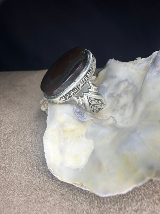 Yemeni Brown Aqeeq Sterling Ring علي حجة الله Inscription (Men)