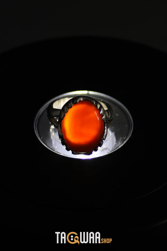 Orange Yemeni Agate Aqeeq Oval Silver Ring