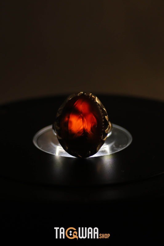 Artisan Silver Ring with Orange Yemeni Agate & 'ALI' Inscription