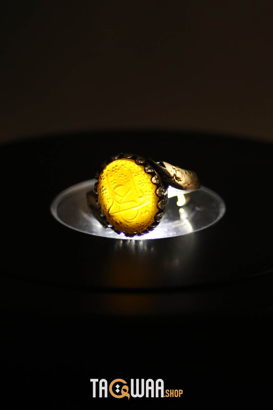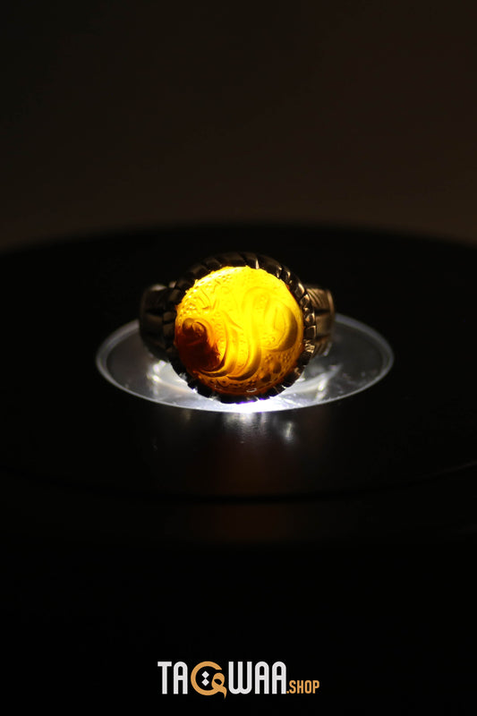 YEMENI ORANGE AQEEQ STERLING SILVER RING FOR MEN FREE SIZE يا علي