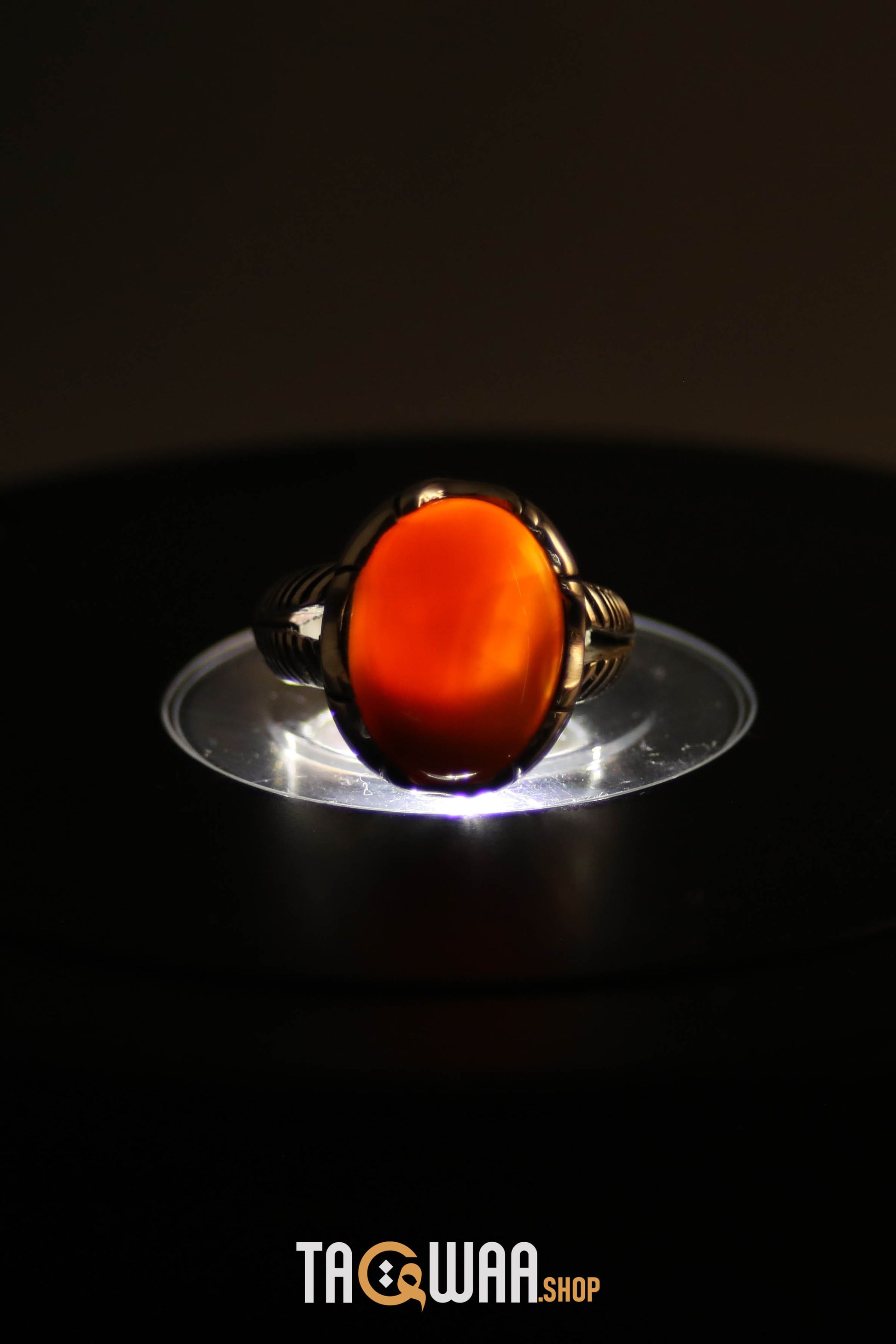 Orange Yemeni Agate Aqeeq Oval Silver Ring