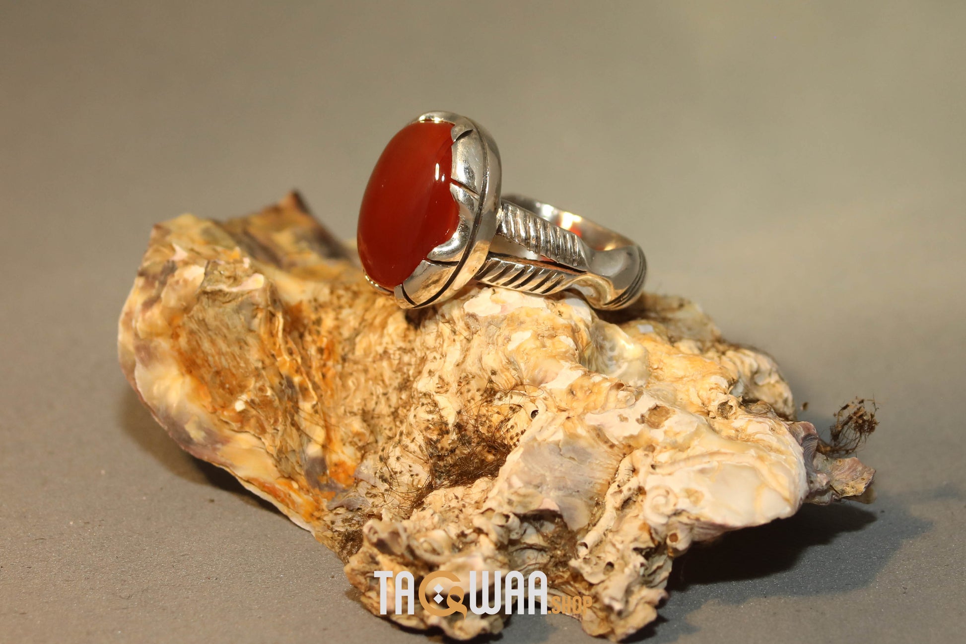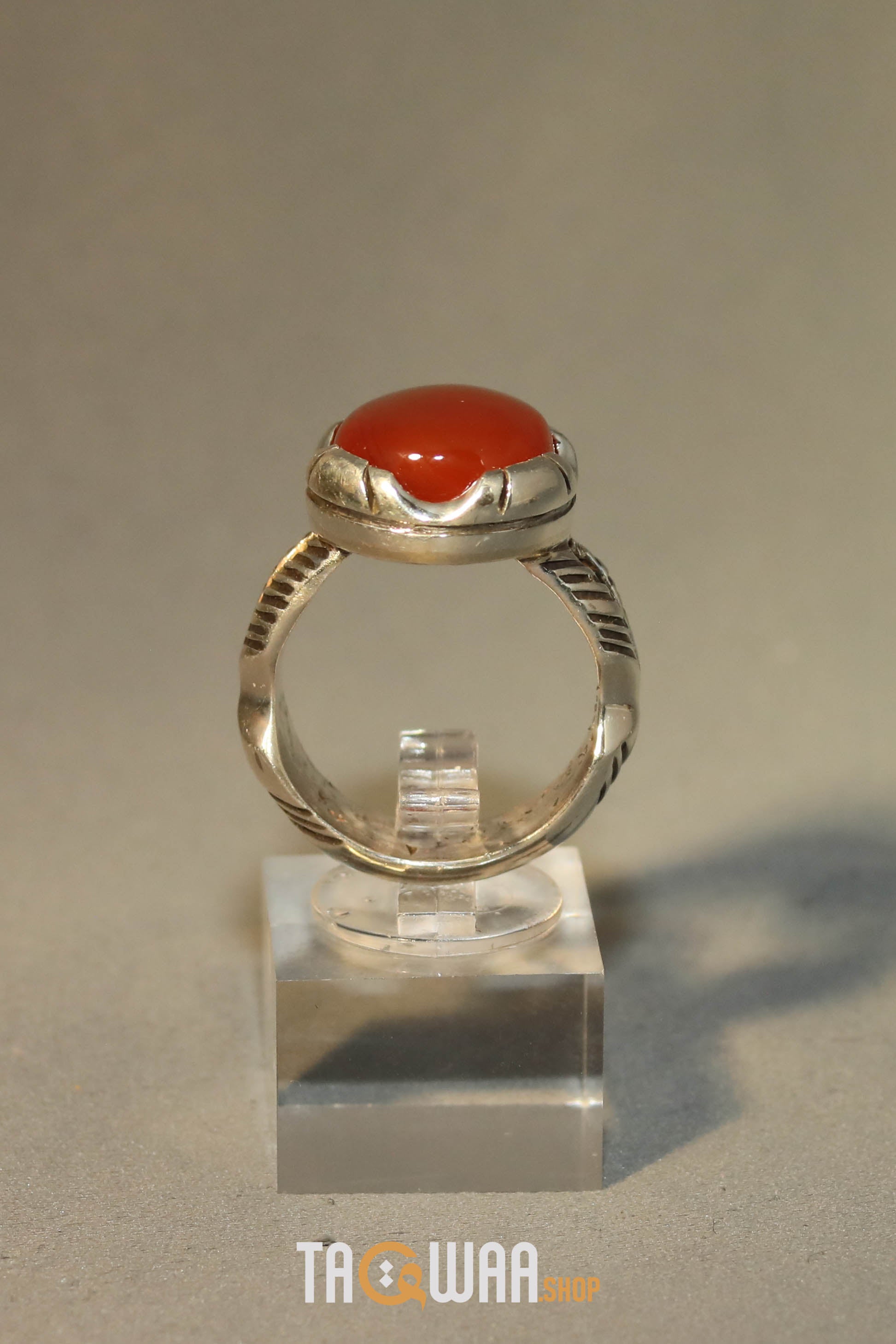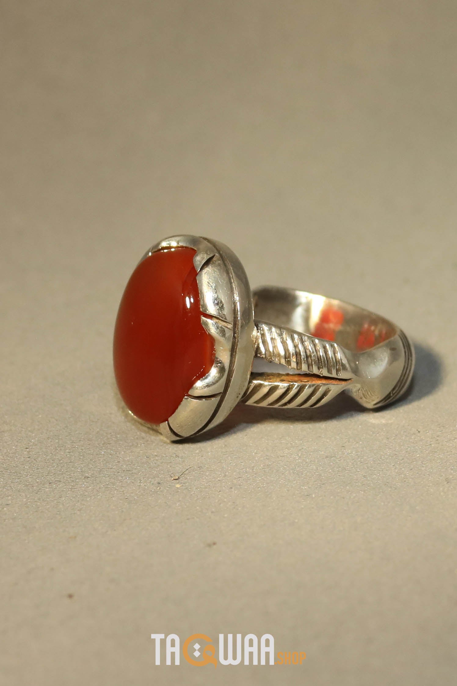 Elevate your style with our Orange Yemeni Agate Aqeeq Oval Silver Ring. Showcasing a stunning oval-shaped orange Yemeni agate, this unique piece adds a touch of natural beauty to any outfit. Embrace elegance and the timeless appeal of Yemeni agate with this exquisite silver ring.