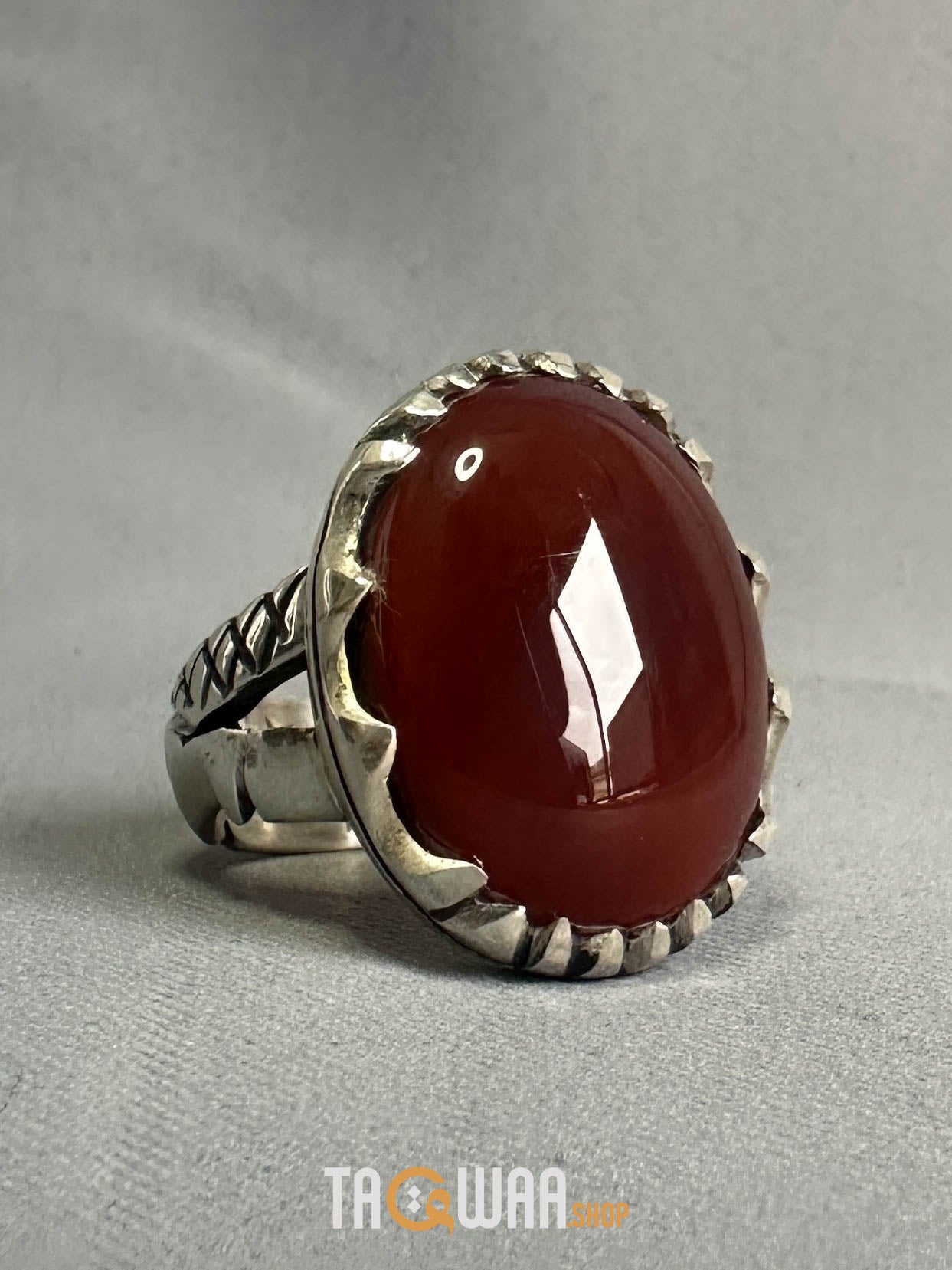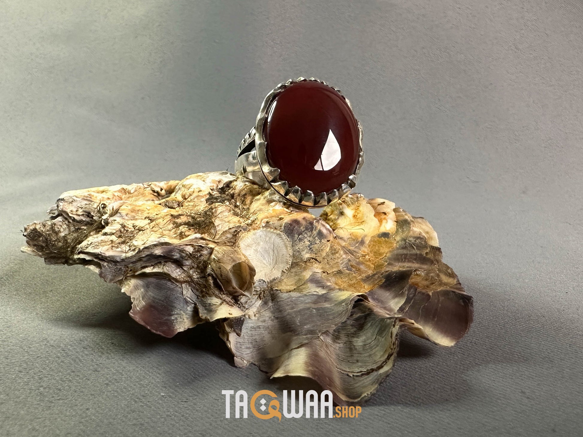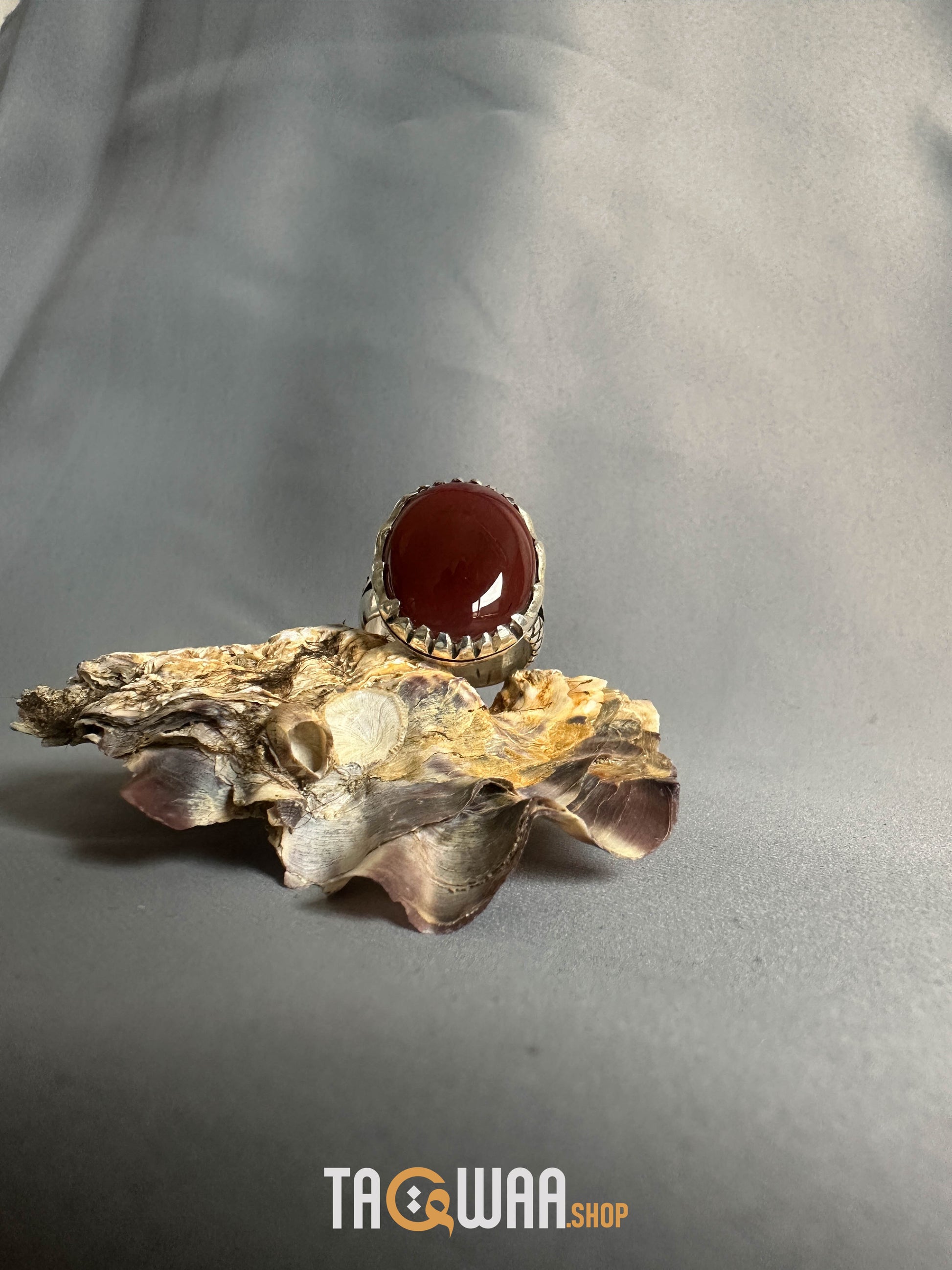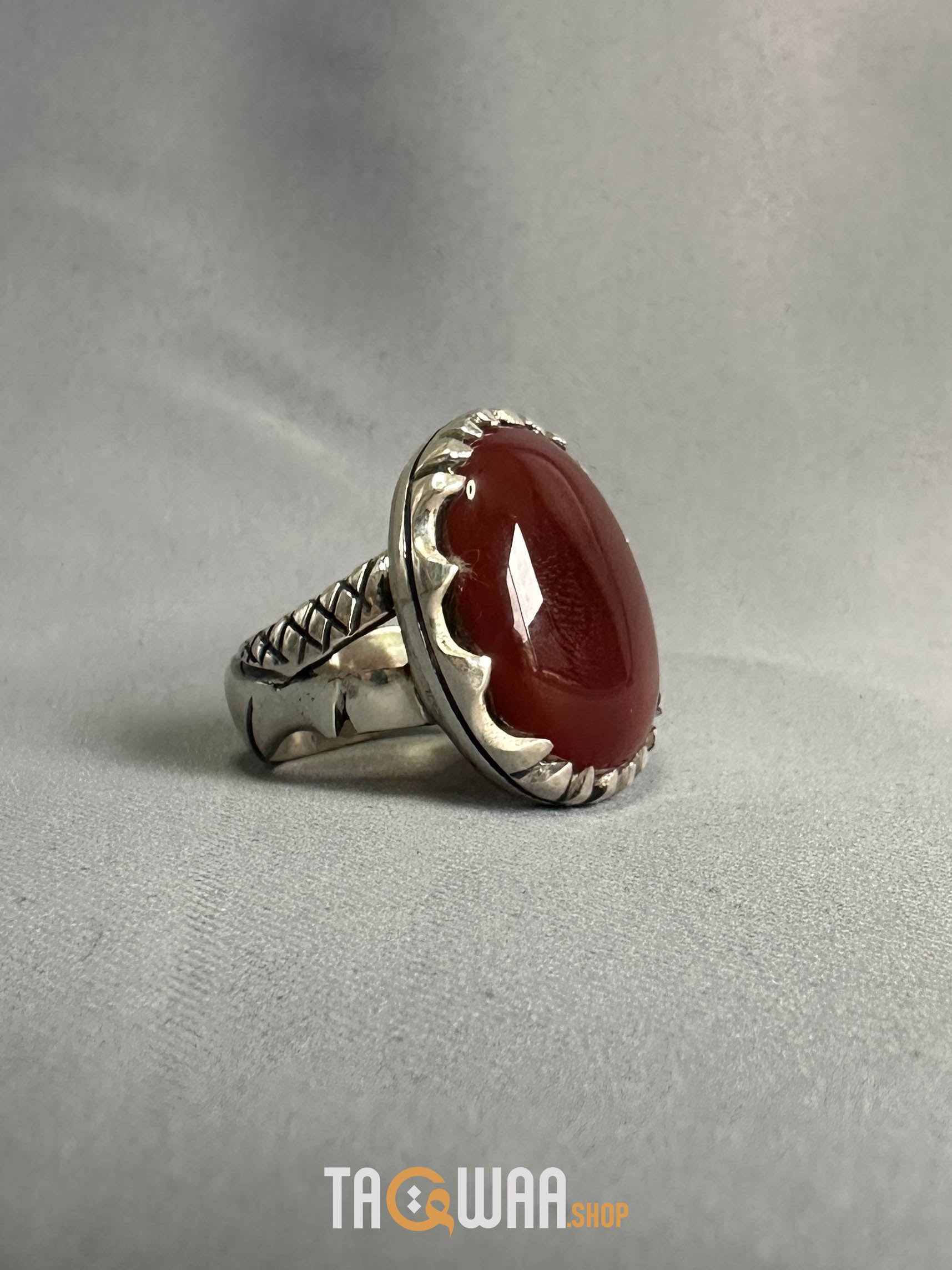 Elevate your style with our Red Yemeni Agate Aqeeq Oval Silver Ring. Handmade with 925 sterling silver and adorned with a red agate-aqeeq stone, its elegant design exudes timeless beauty. Express your individuality with this unique piece. Own a piece of art, crafted with care and precision for you.