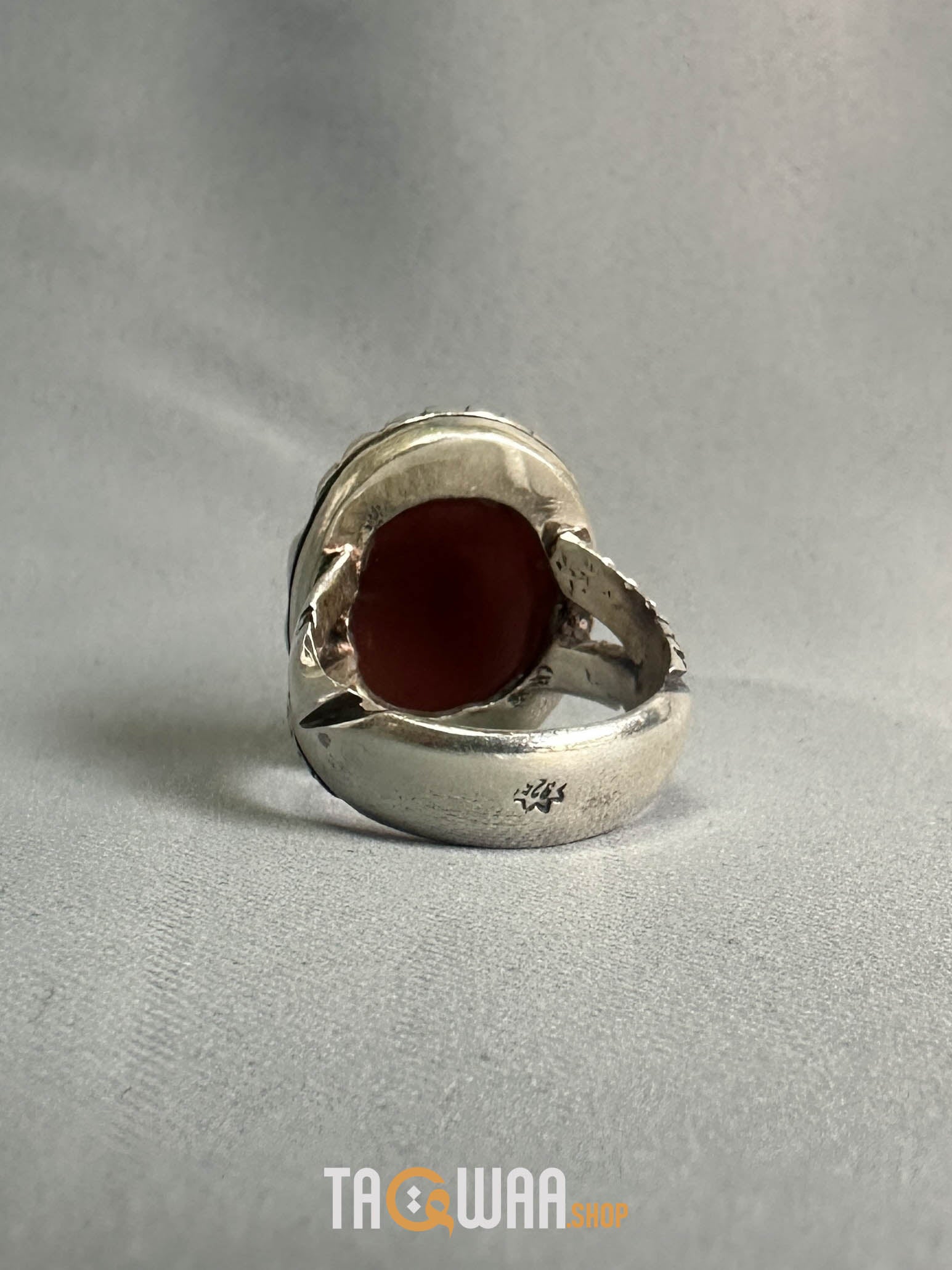 Red Yemeni Agate Aqeeq Oval Silver Ring