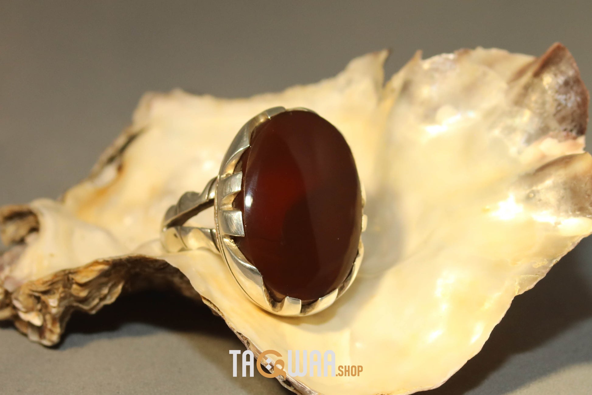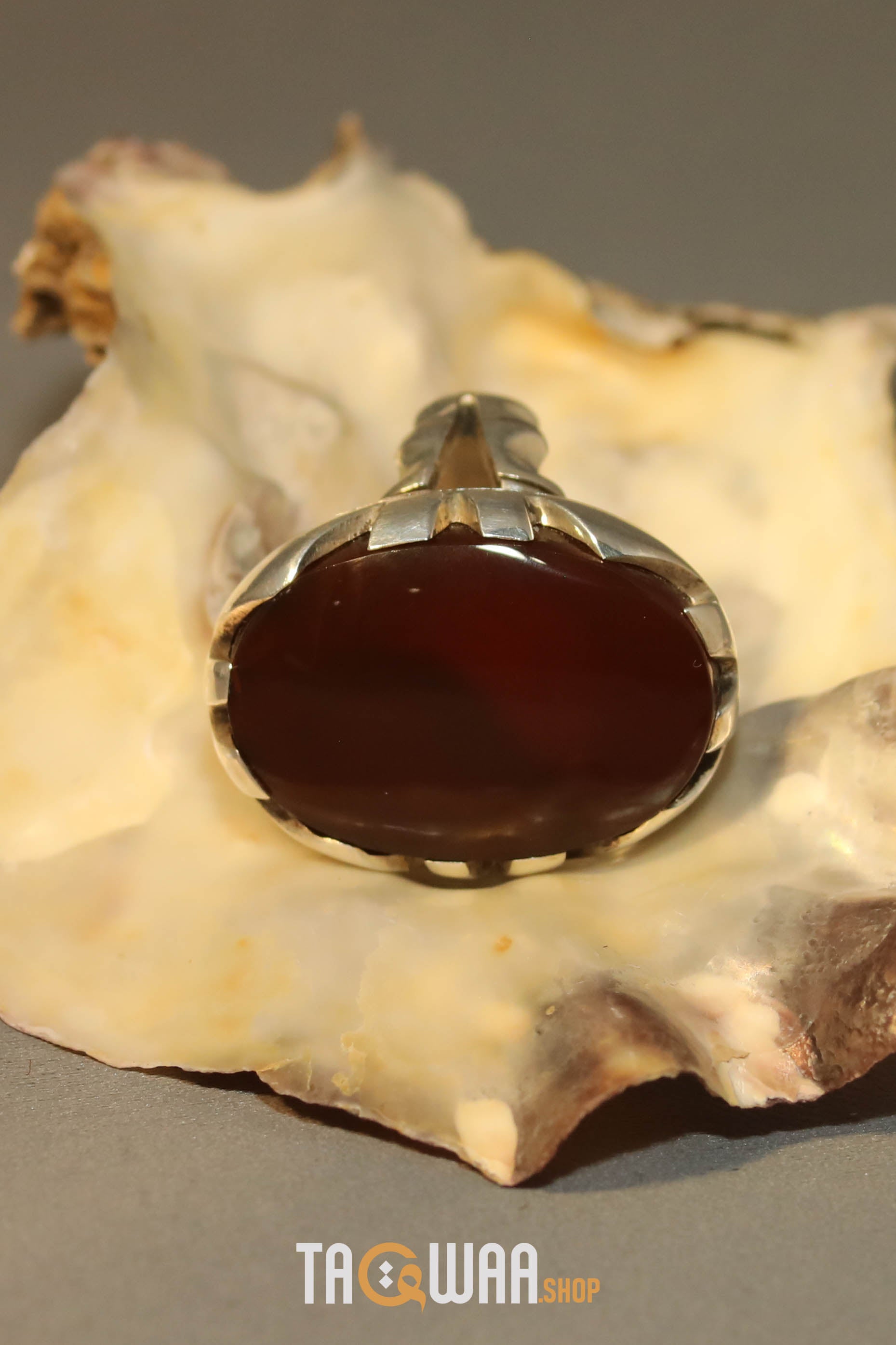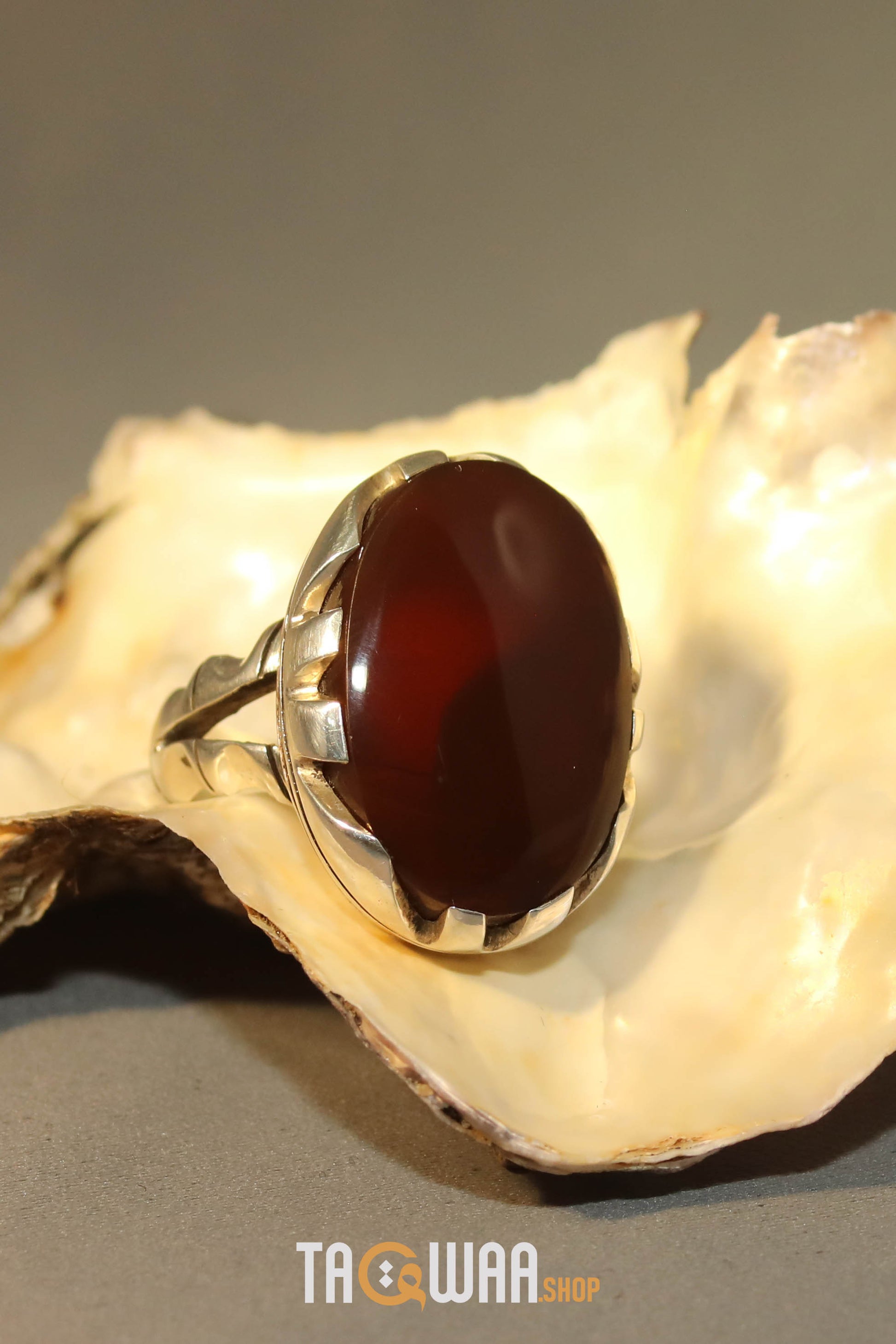 This Red Yemeni Agate Aqeeq Oval Silver Ring is a must-have for any jewelry collection. Its stunning oval-shaped red Yemeni agate (Aqeeq) is a statement piece that will elevate any outfit. Its elegant design exudes sophistication and class, making it a perfect accessory for any occasion.