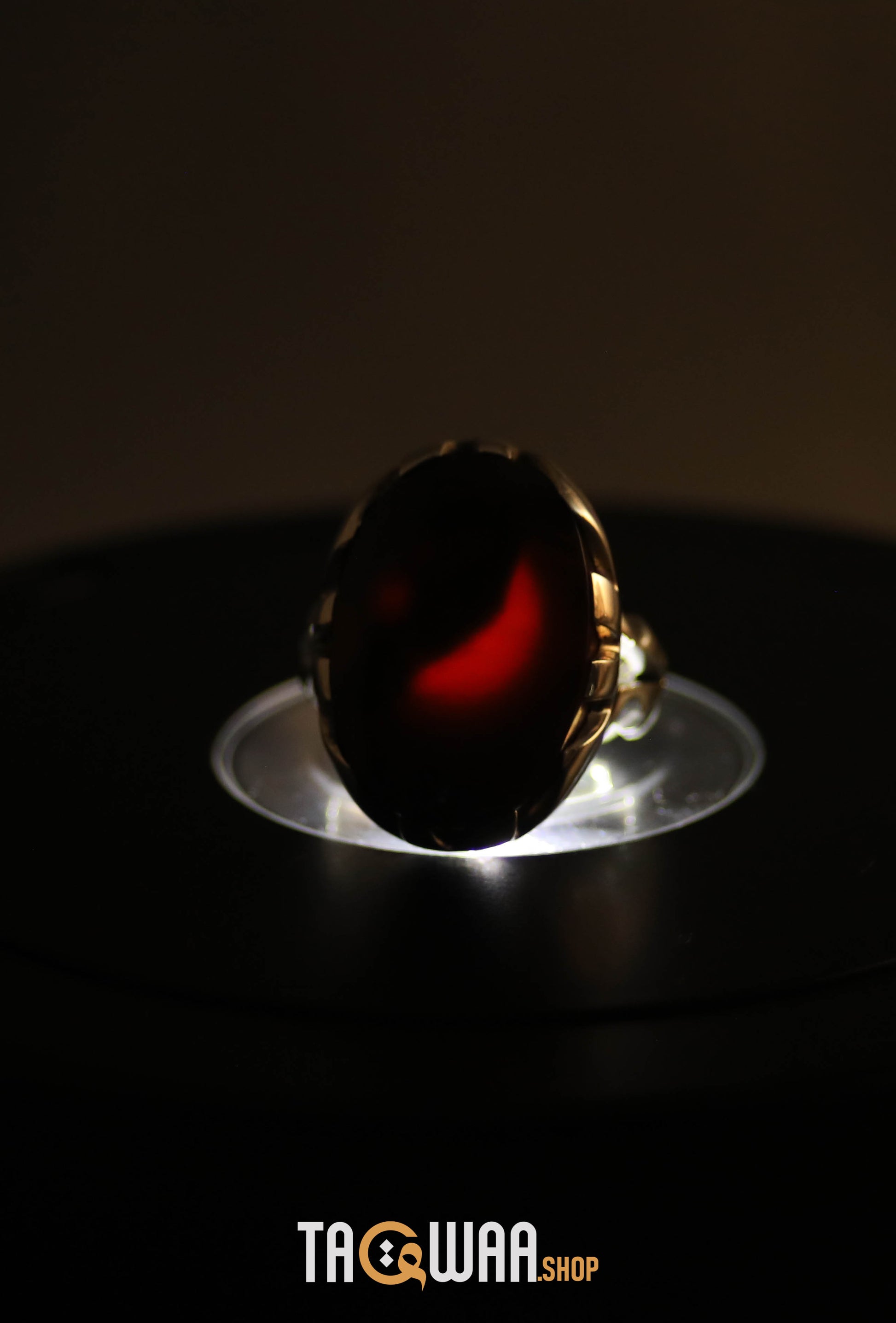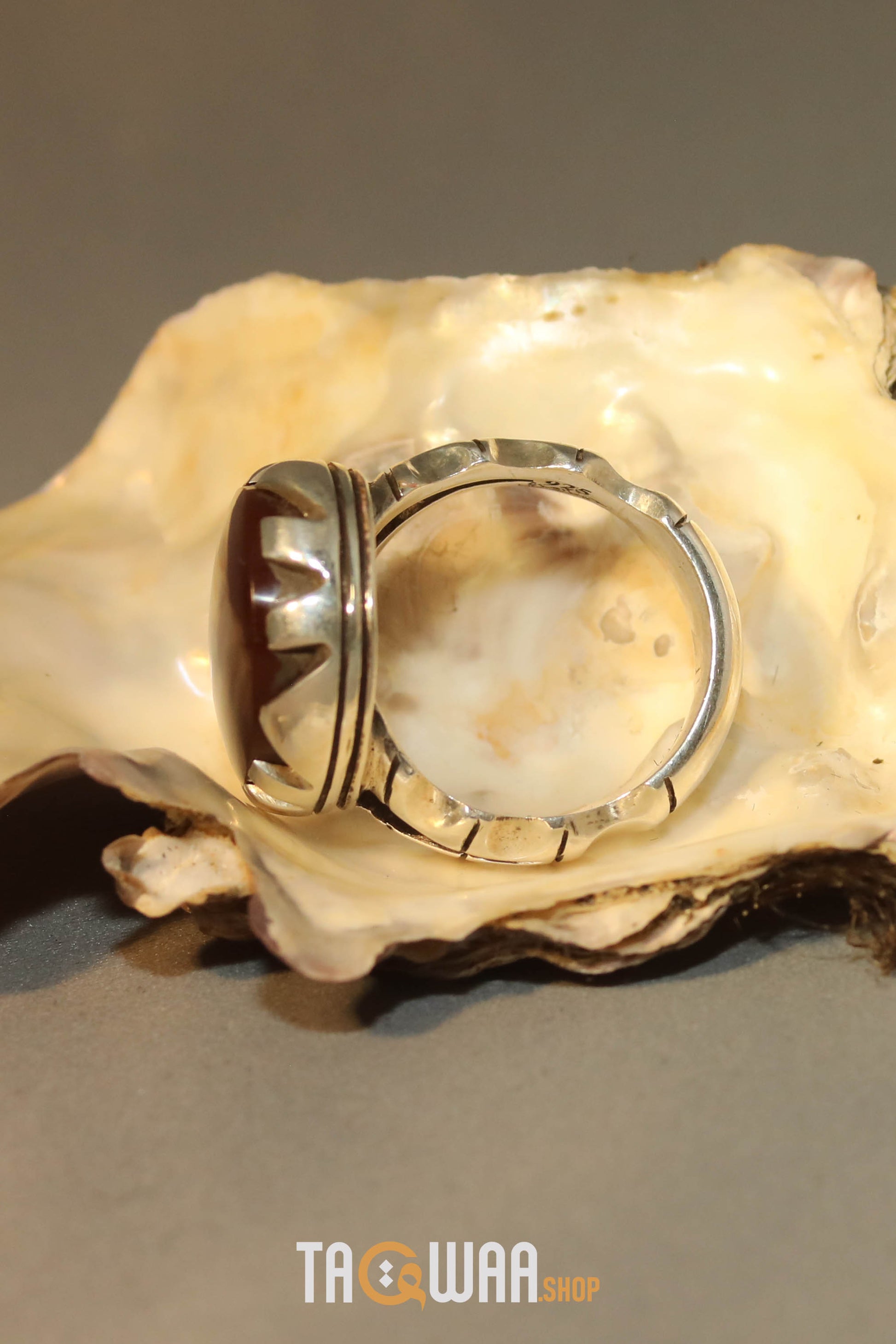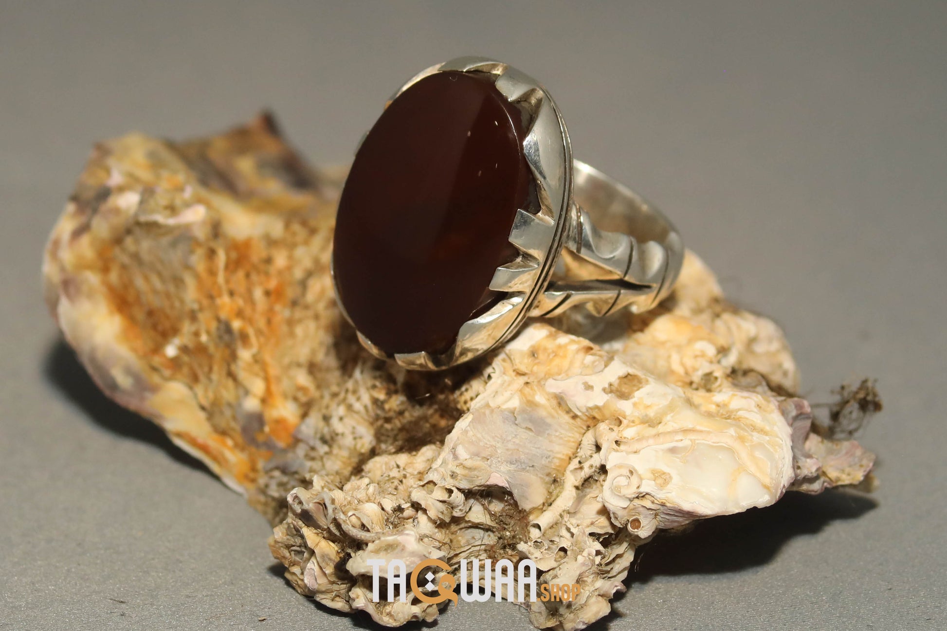 This Red Yemeni Agate Aqeeq Oval Silver Ring is a must-have for any jewelry collection. Its stunning oval-shaped red Yemeni agate (Aqeeq) is a statement piece that will elevate any outfit. Its elegant design exudes sophistication and class, making it a perfect accessory for any occasion.