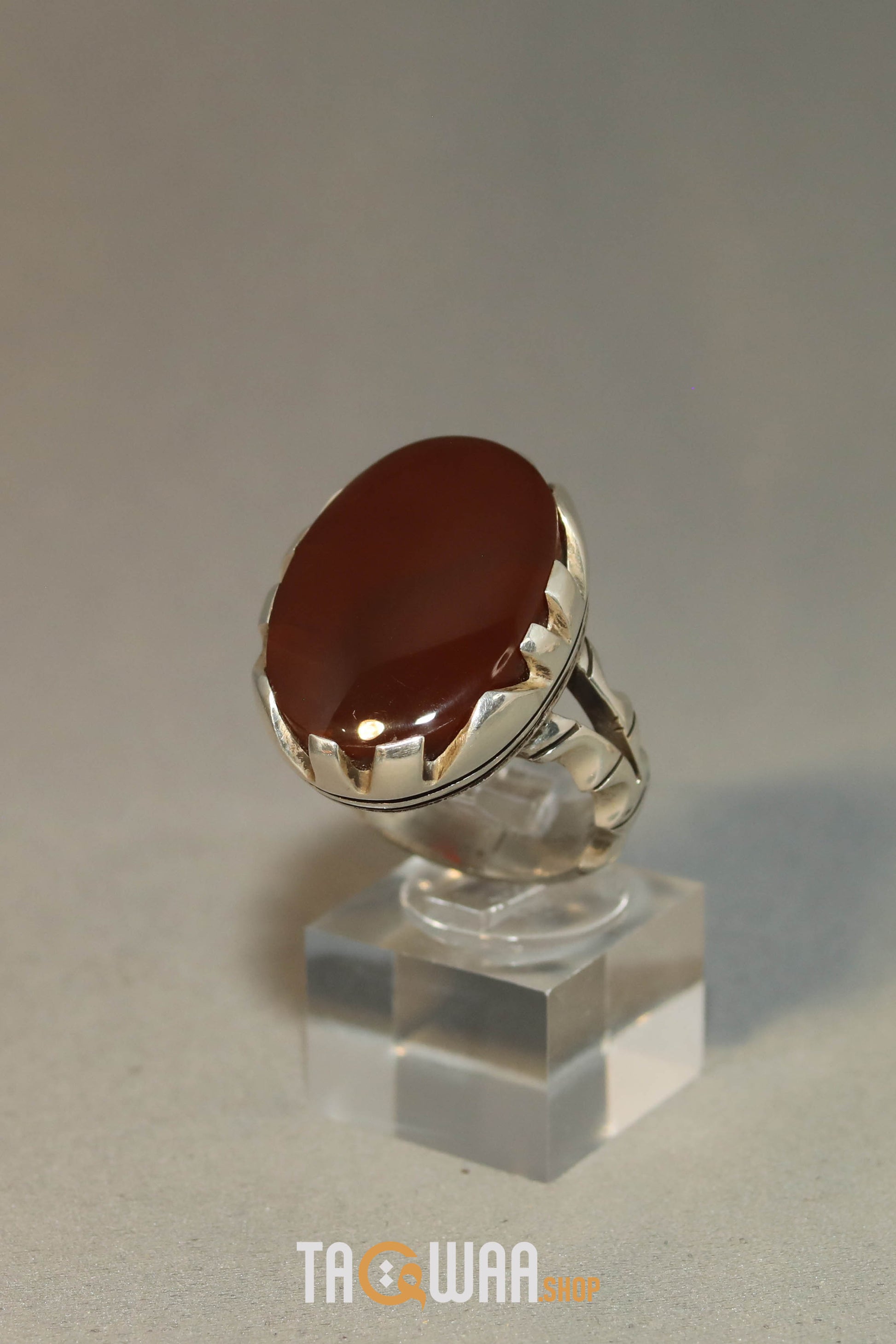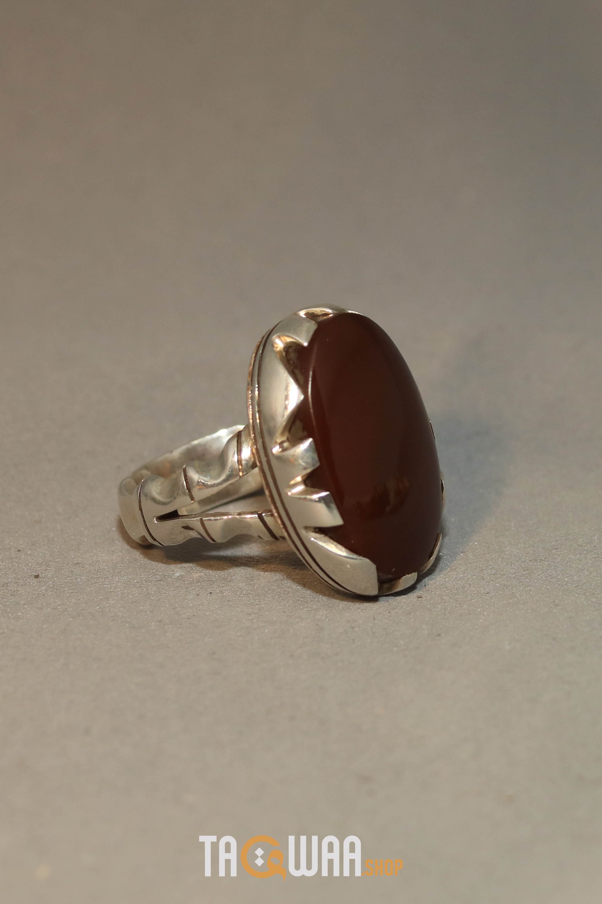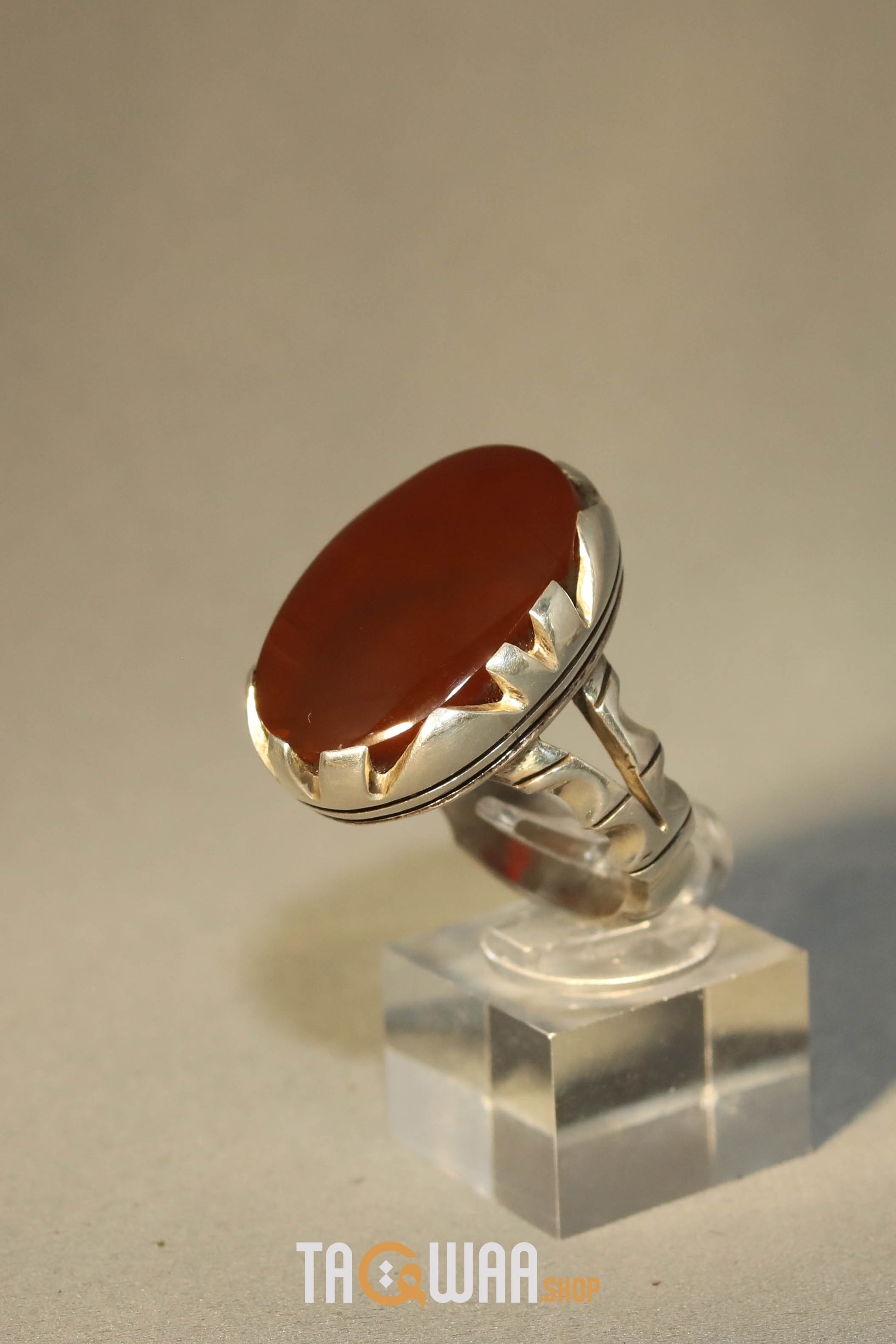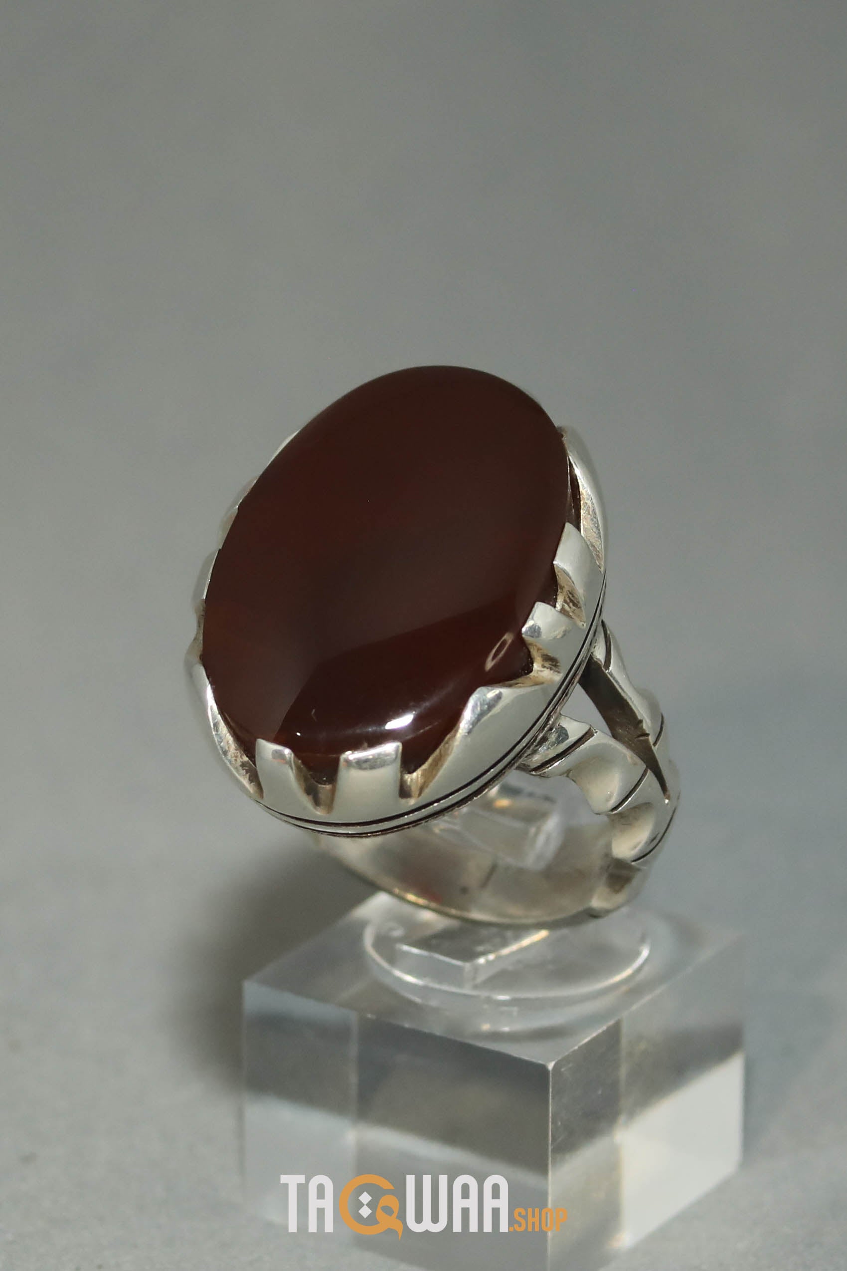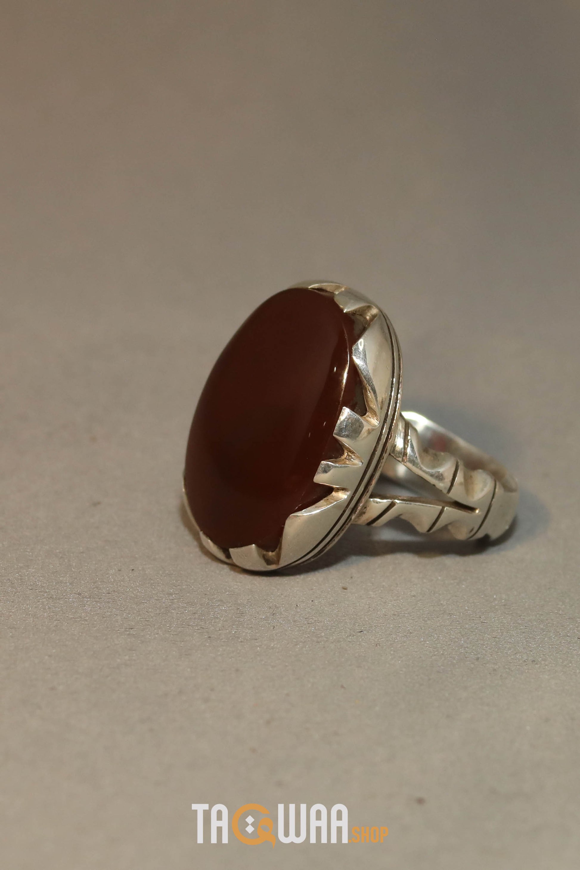 Red Yemeni Agate Aqeeq Oval Silver Ring