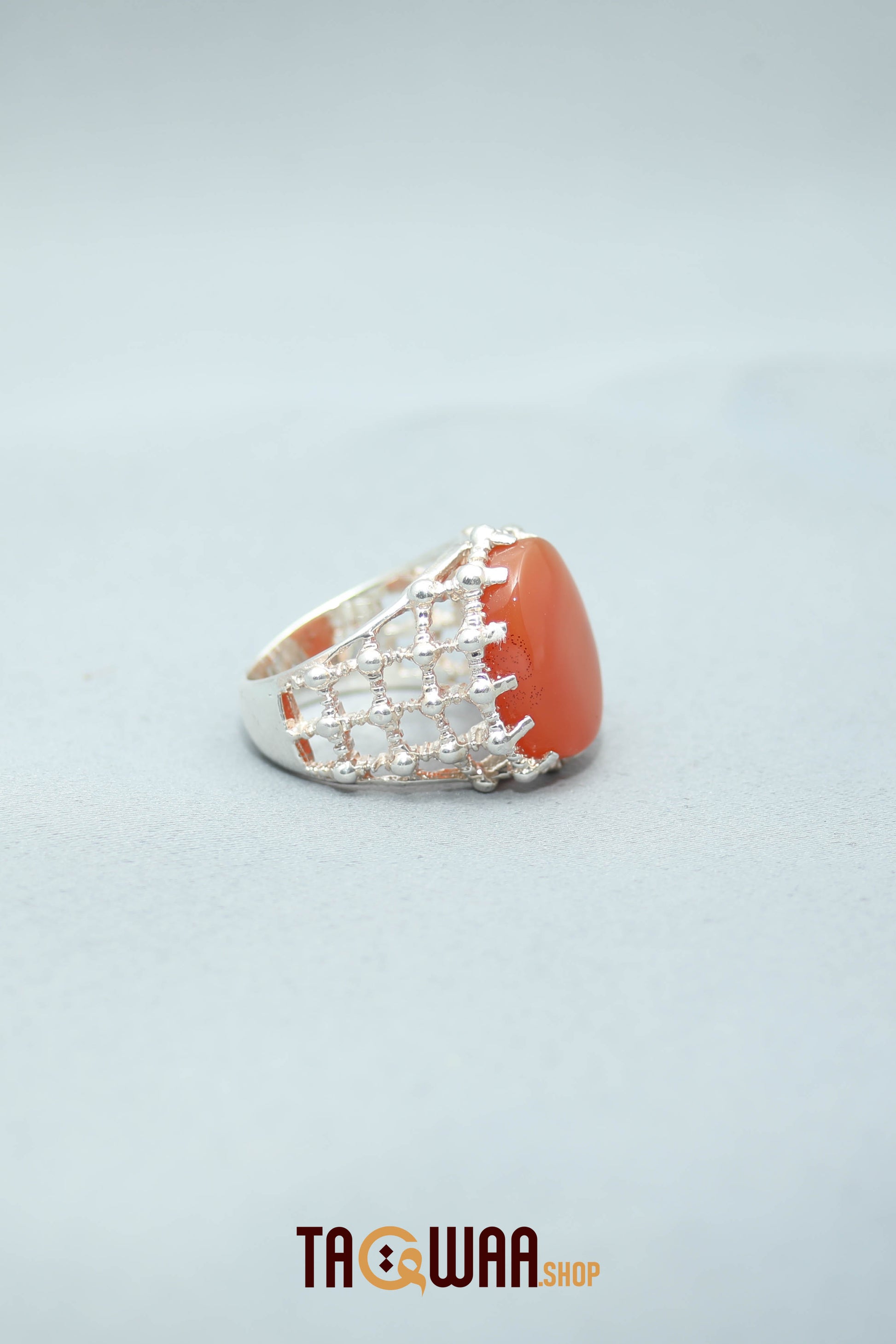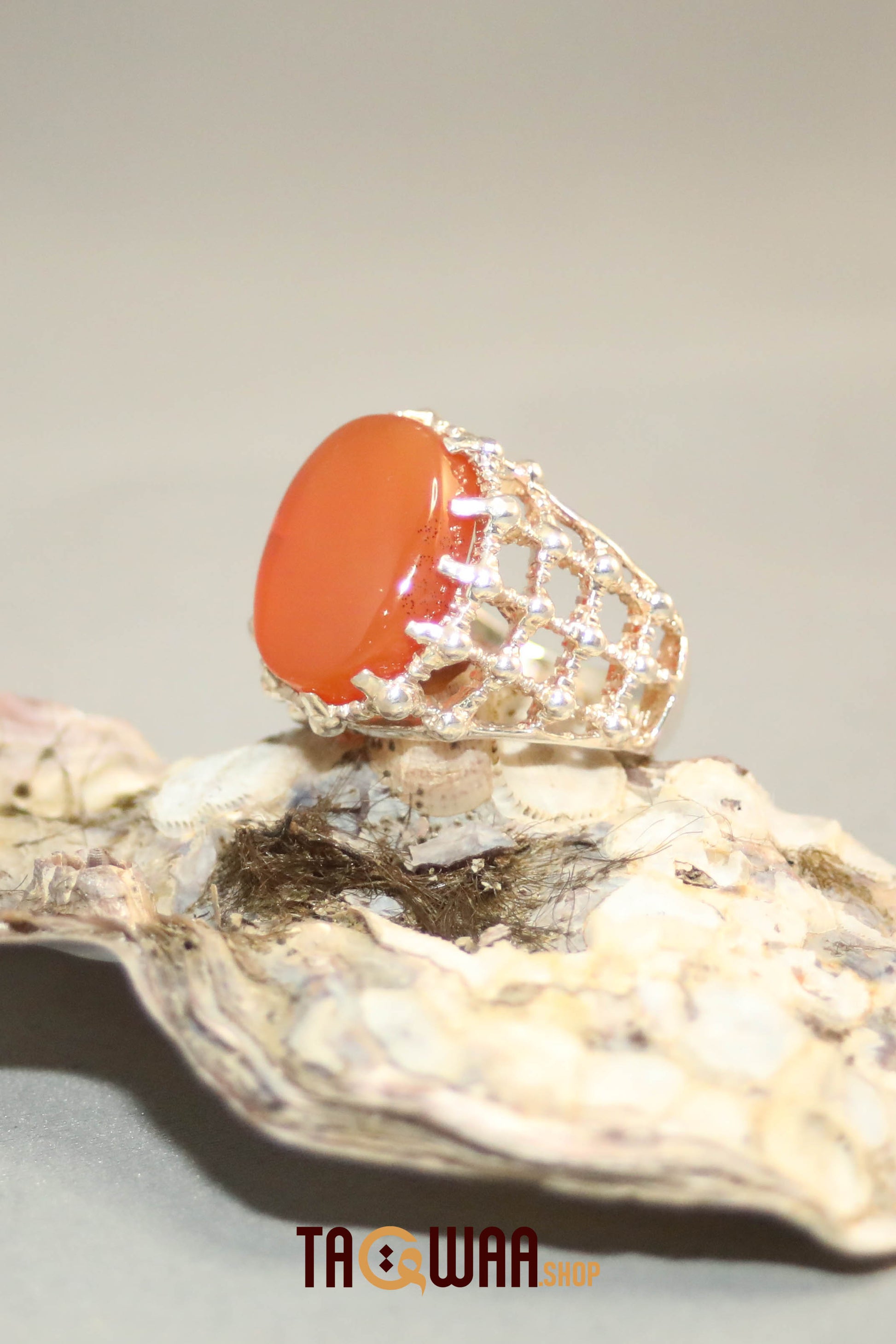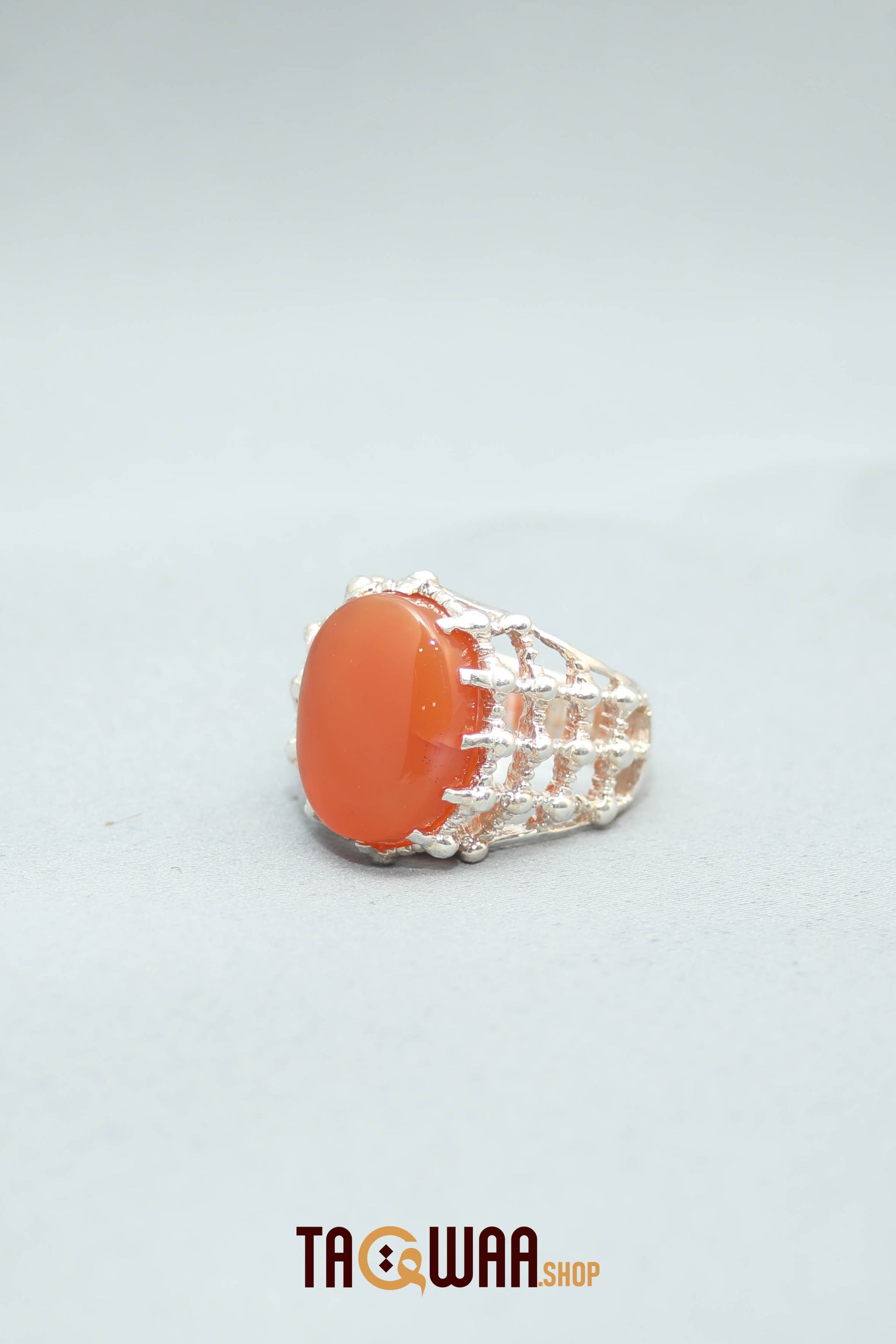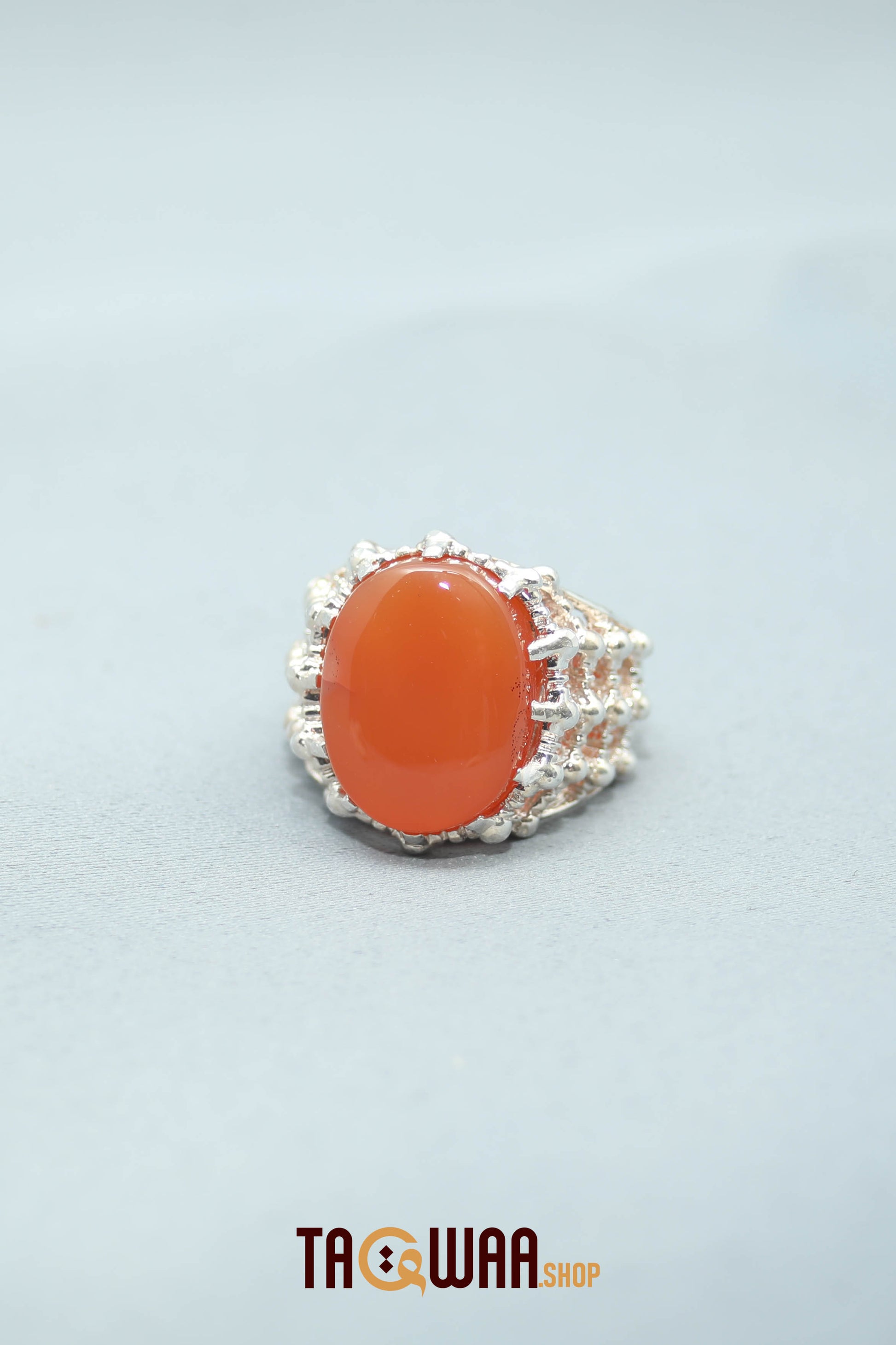 Embrace culture and beauty with our Silver Ring featuring Orange Yemeni Agate and inspired by Imam Hussain's shrine. The vibrant agate stone adds a touch of elegance to a design that pays homage to a powerful cultural symbol. A unique and meaningful addition to any ring collection.