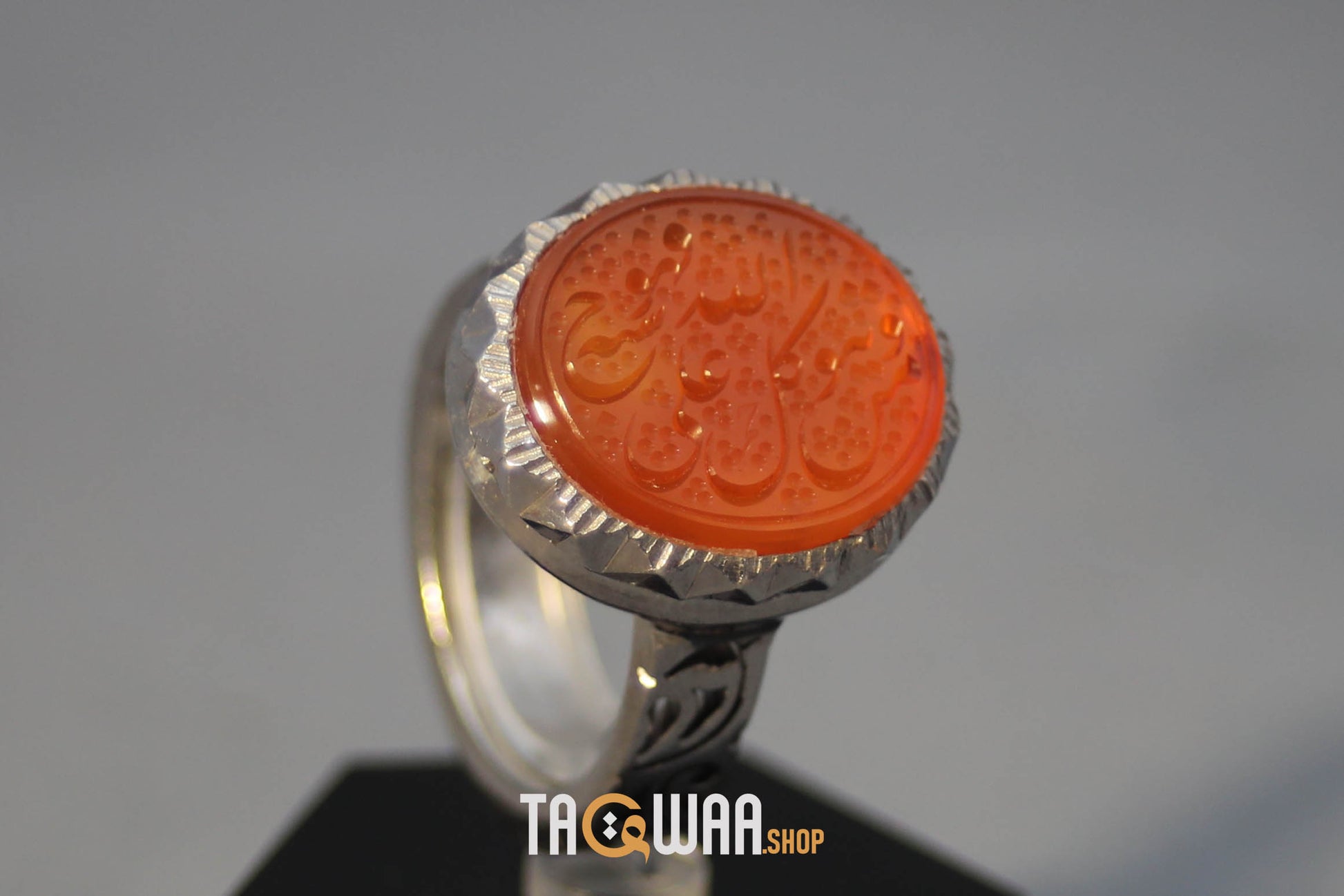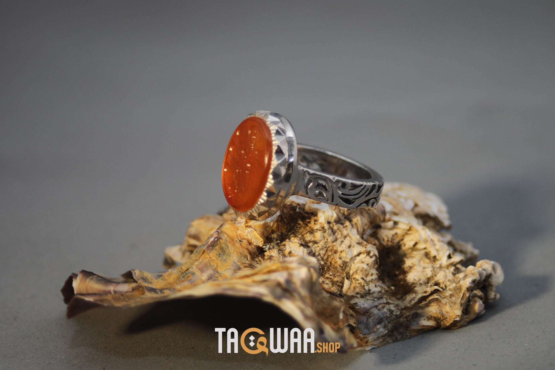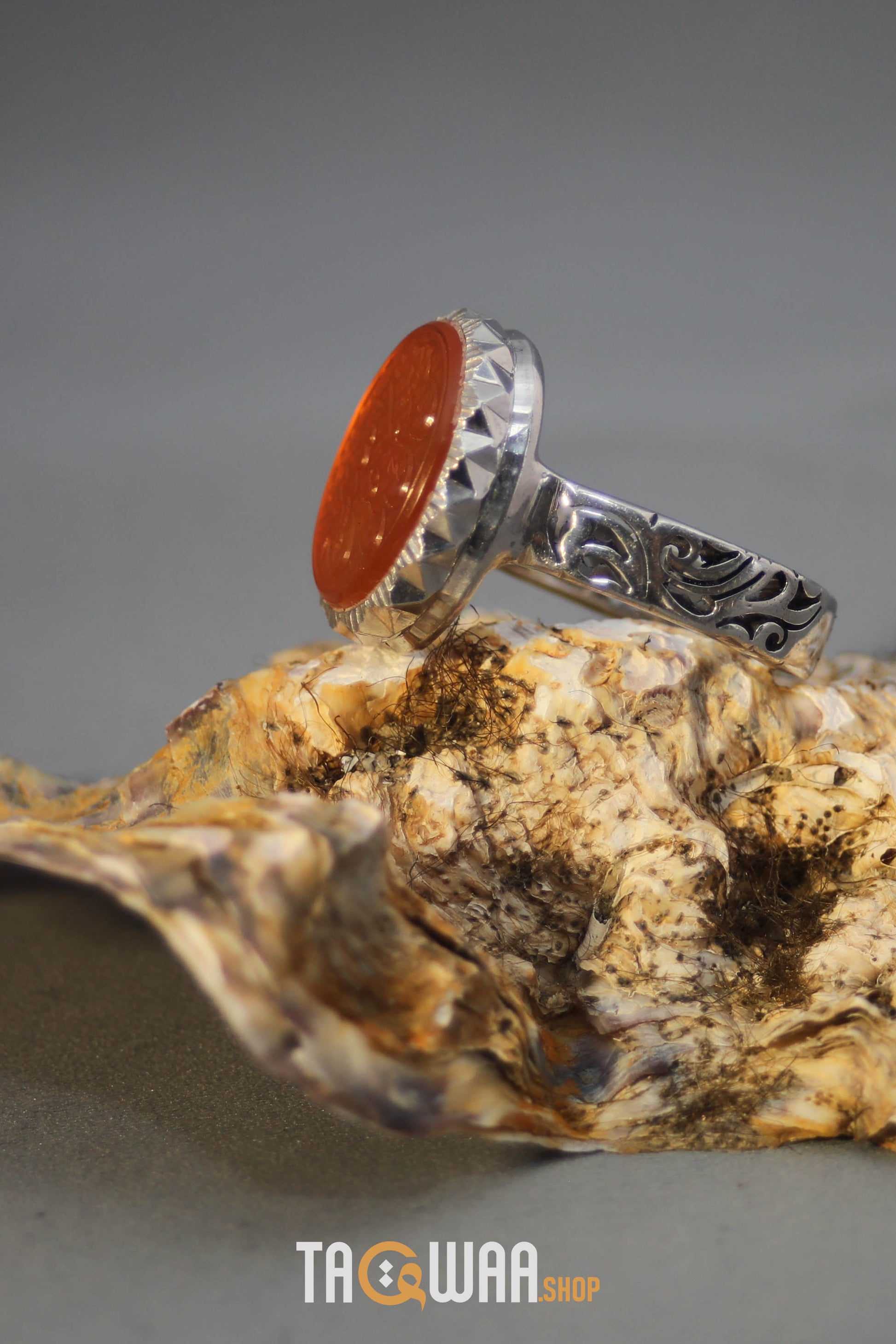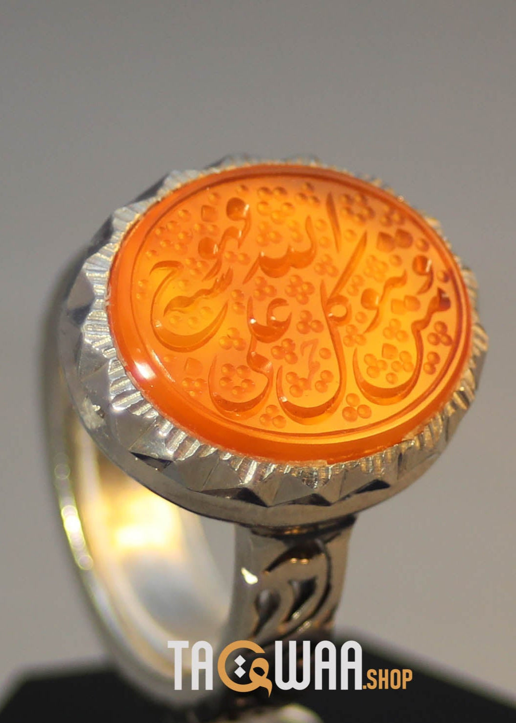 Timeless Men's Silver Ring with Yemeni Orange Aqeeq – Engraved with 'وَمَنْ يَتَوَكَّلْ عَلَى اللَّهِ فَهُوَ حَسْبُهُ
