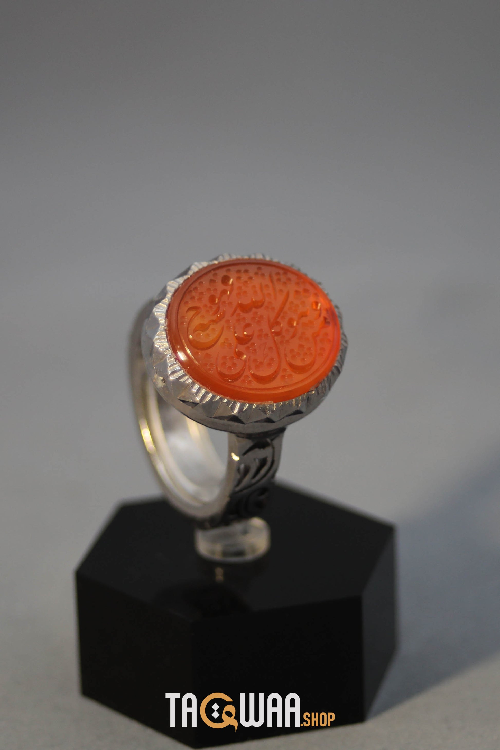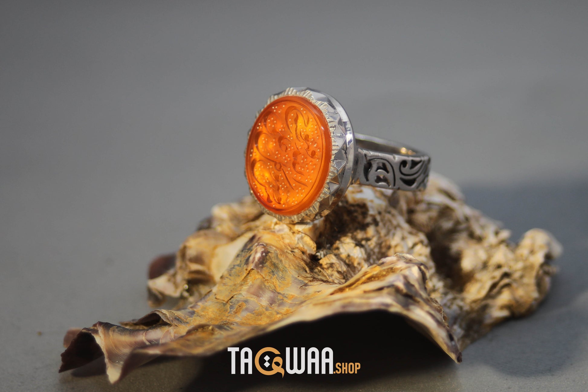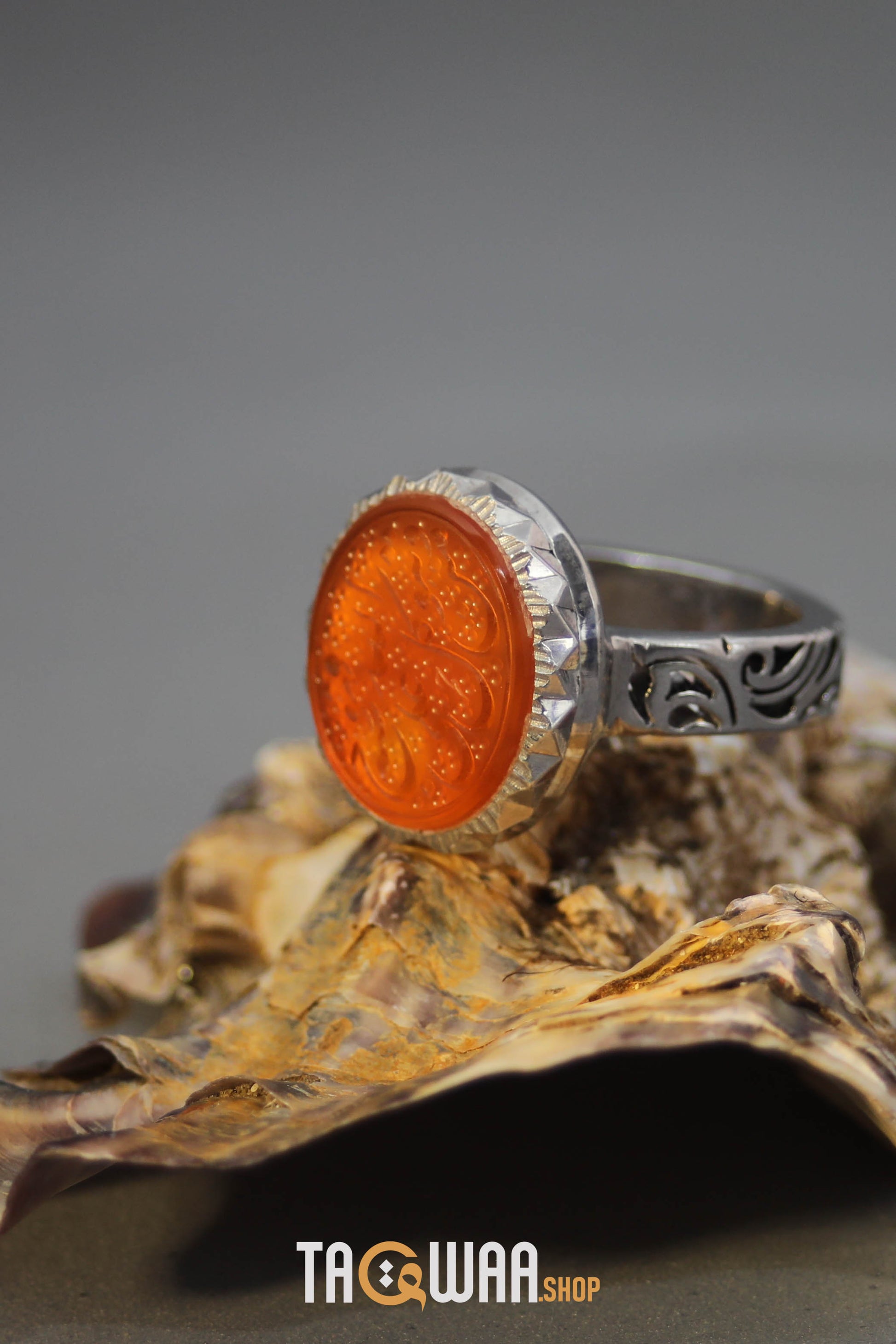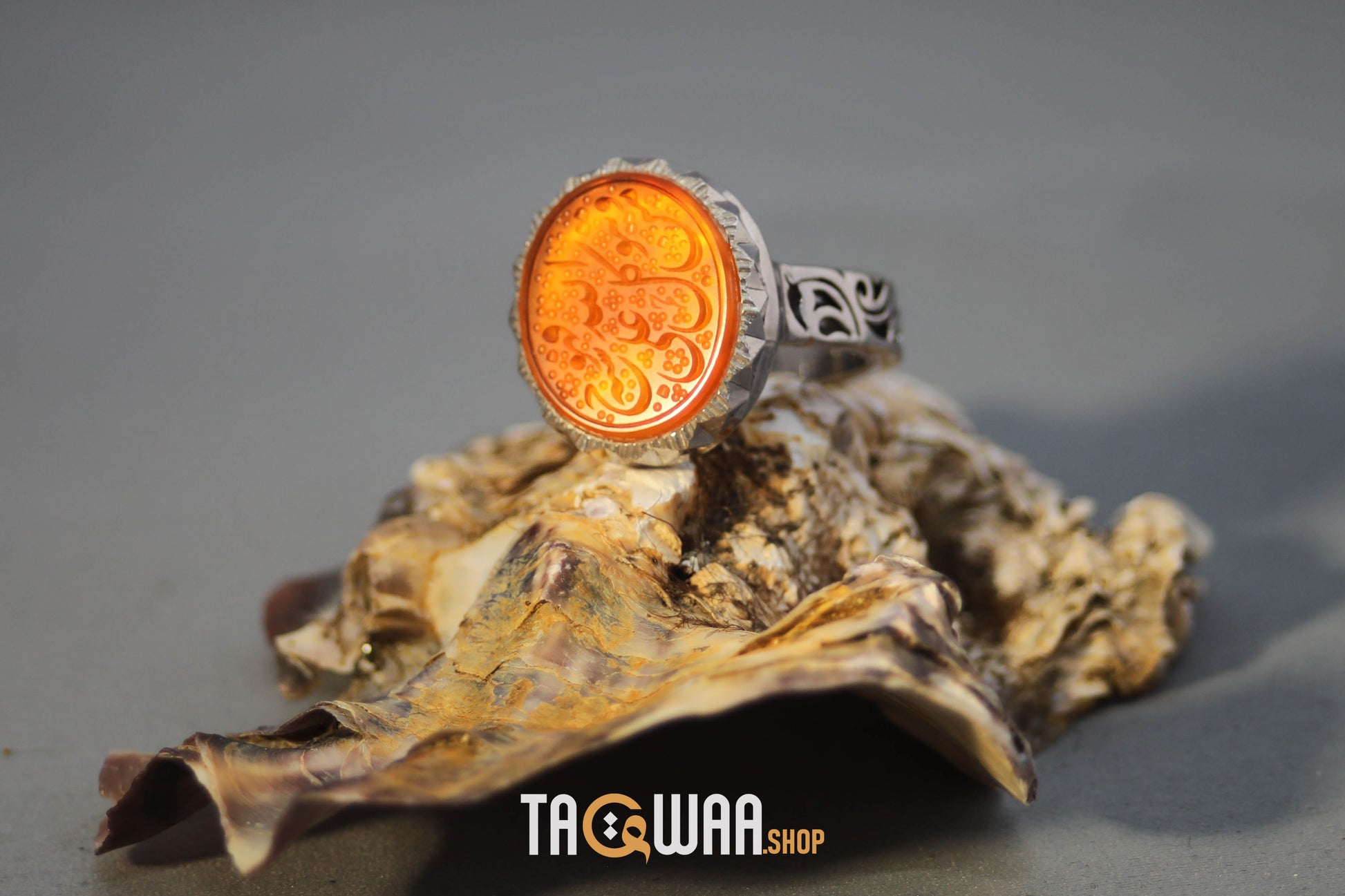 Timeless Men's Silver Ring with Yemeni Orange Aqeeq – Engraved with 'وَمَنْ يَتَوَكَّلْ عَلَى اللَّهِ فَهُوَ حَسْبُهُ