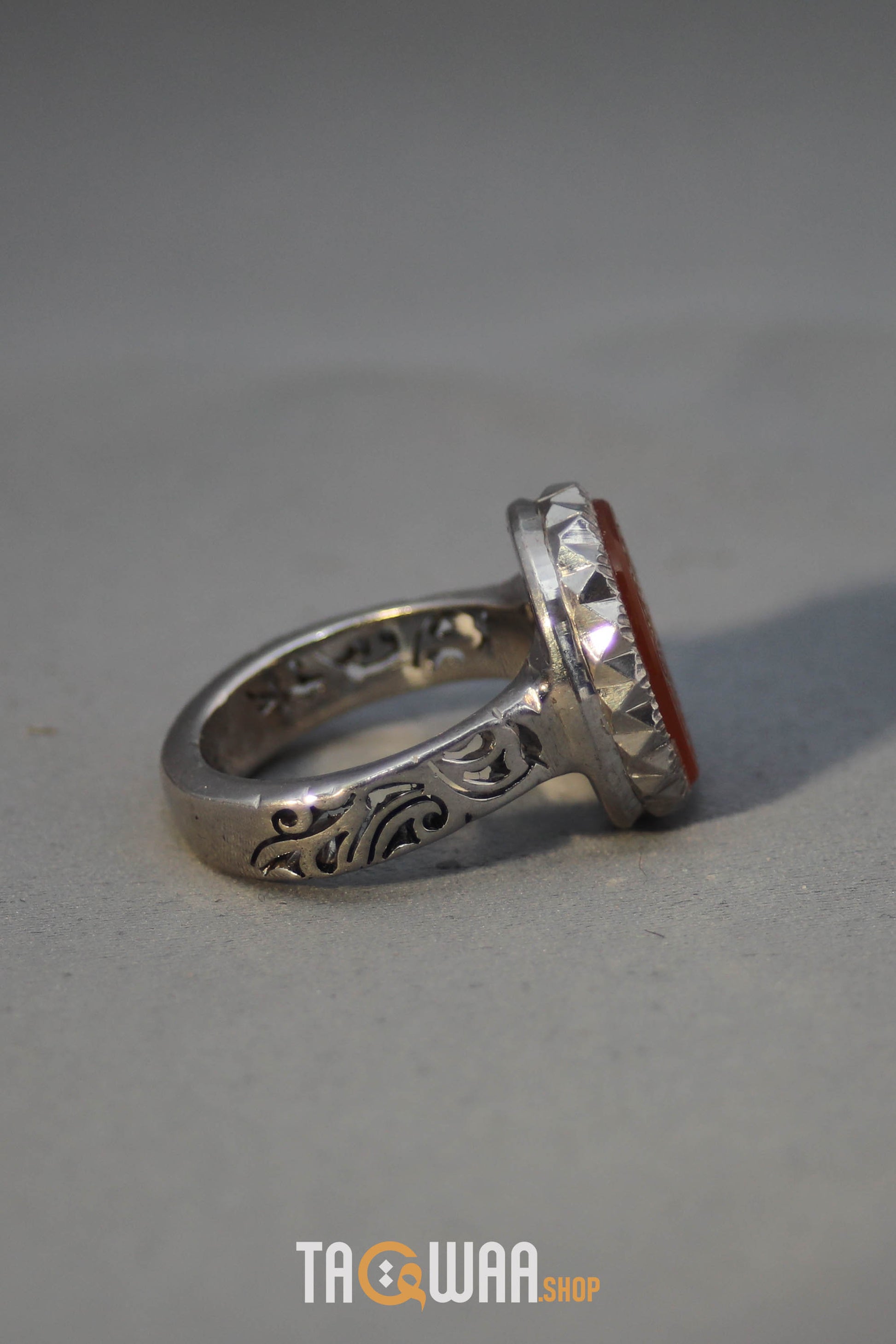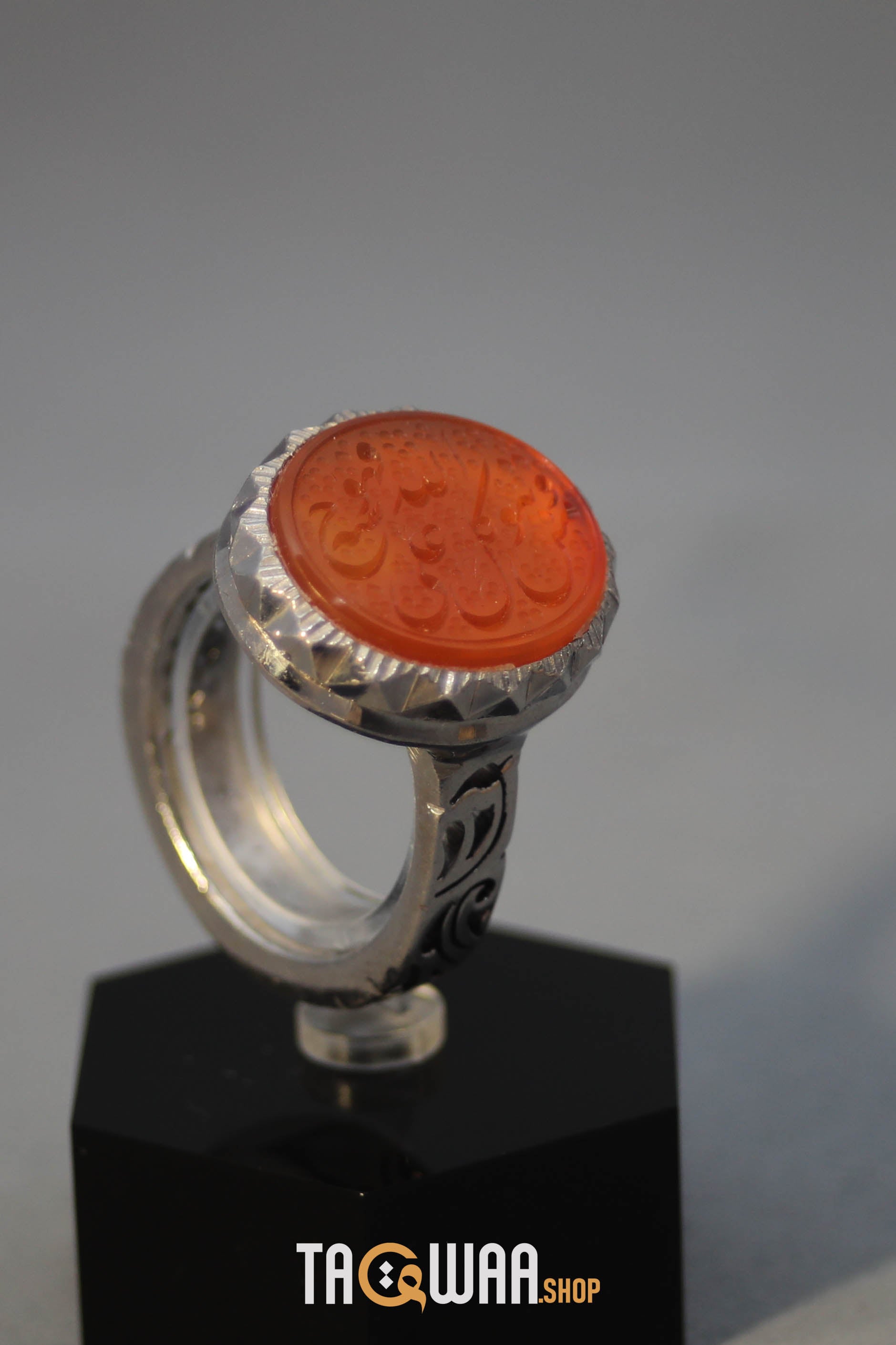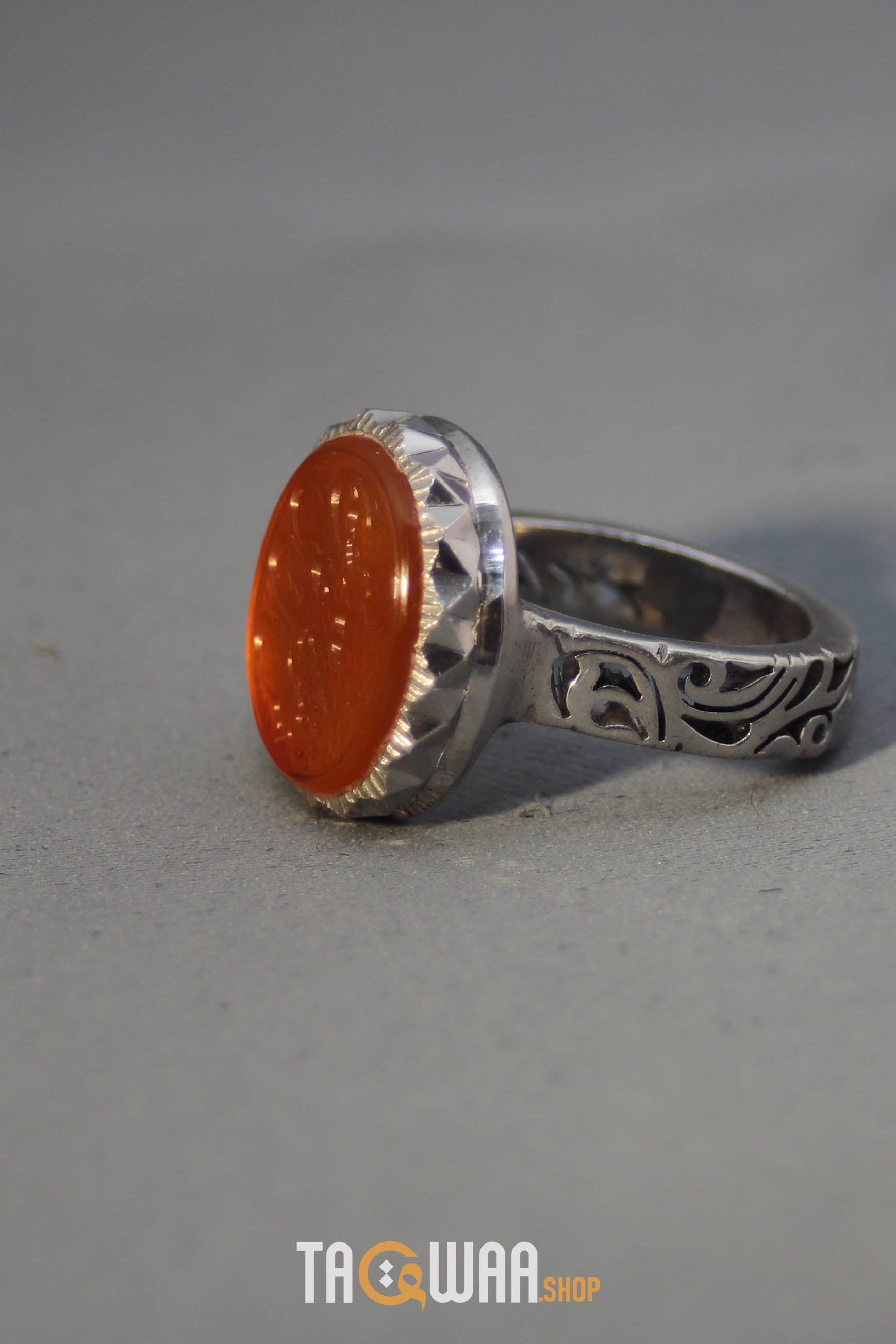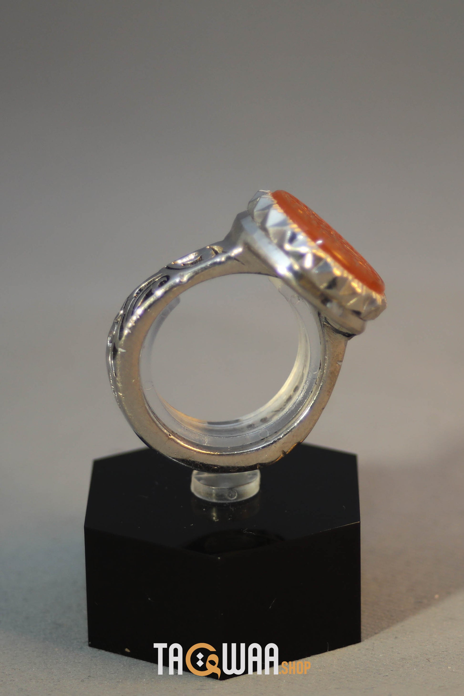 Timeless Men's Silver Ring with Yemeni Orange Aqeeq – Engraved with 'وَمَنْ يَتَوَكَّلْ عَلَى اللَّهِ فَهُوَ حَسْبُهُ