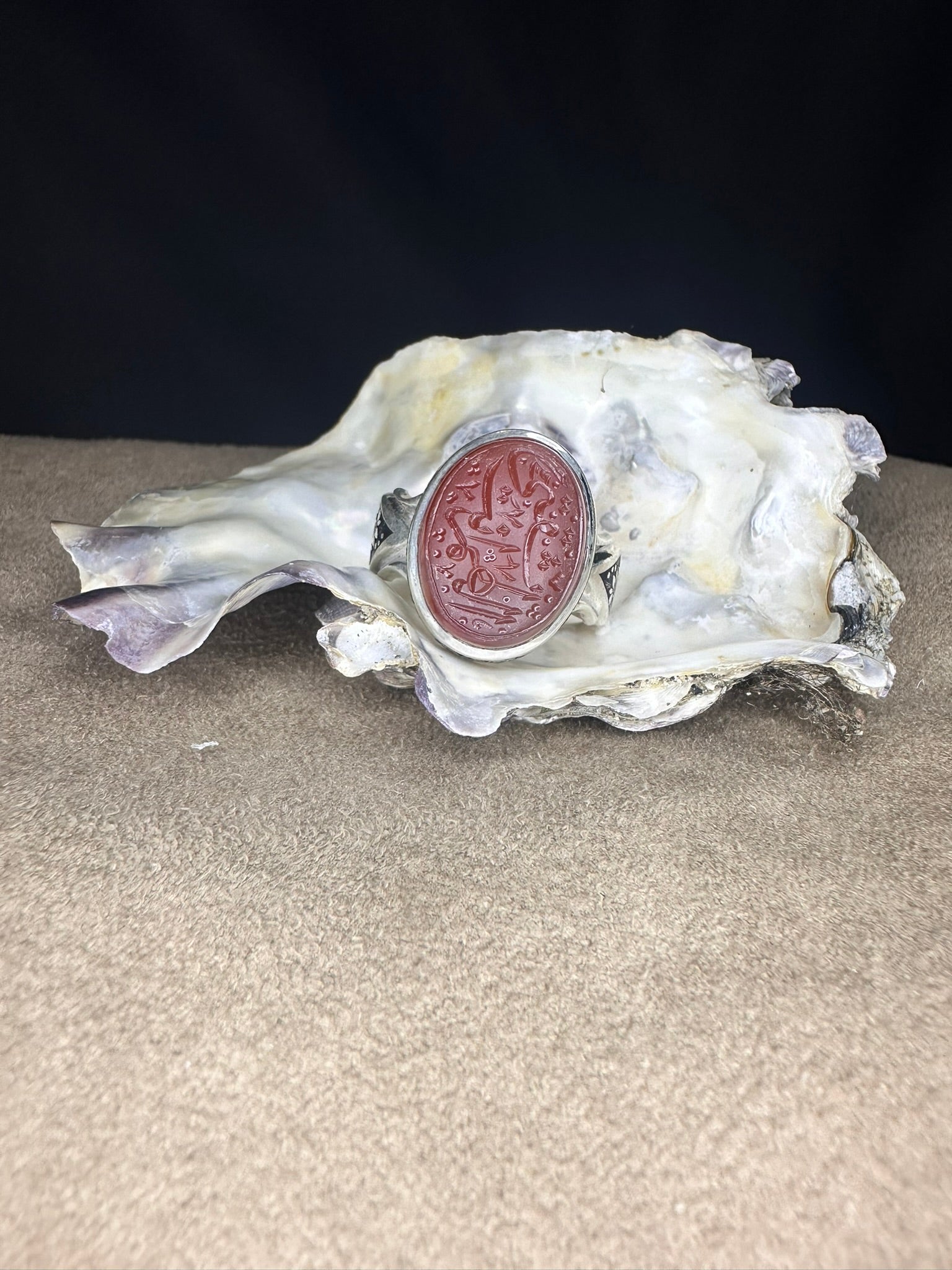 - For Yemeni Aqiq; Imam Muhammad Baqar has stated that if a person possesses a ring set in Aqeeq and turns in towards his palm and then looks at it, and recites Surah Qadr (chapter 97), then Allah keeps him protected the whole day from trouble, wherever they are descended from heaven or earth and he will be protected until the evening by Allah, and Allah’s friend who will guide him.