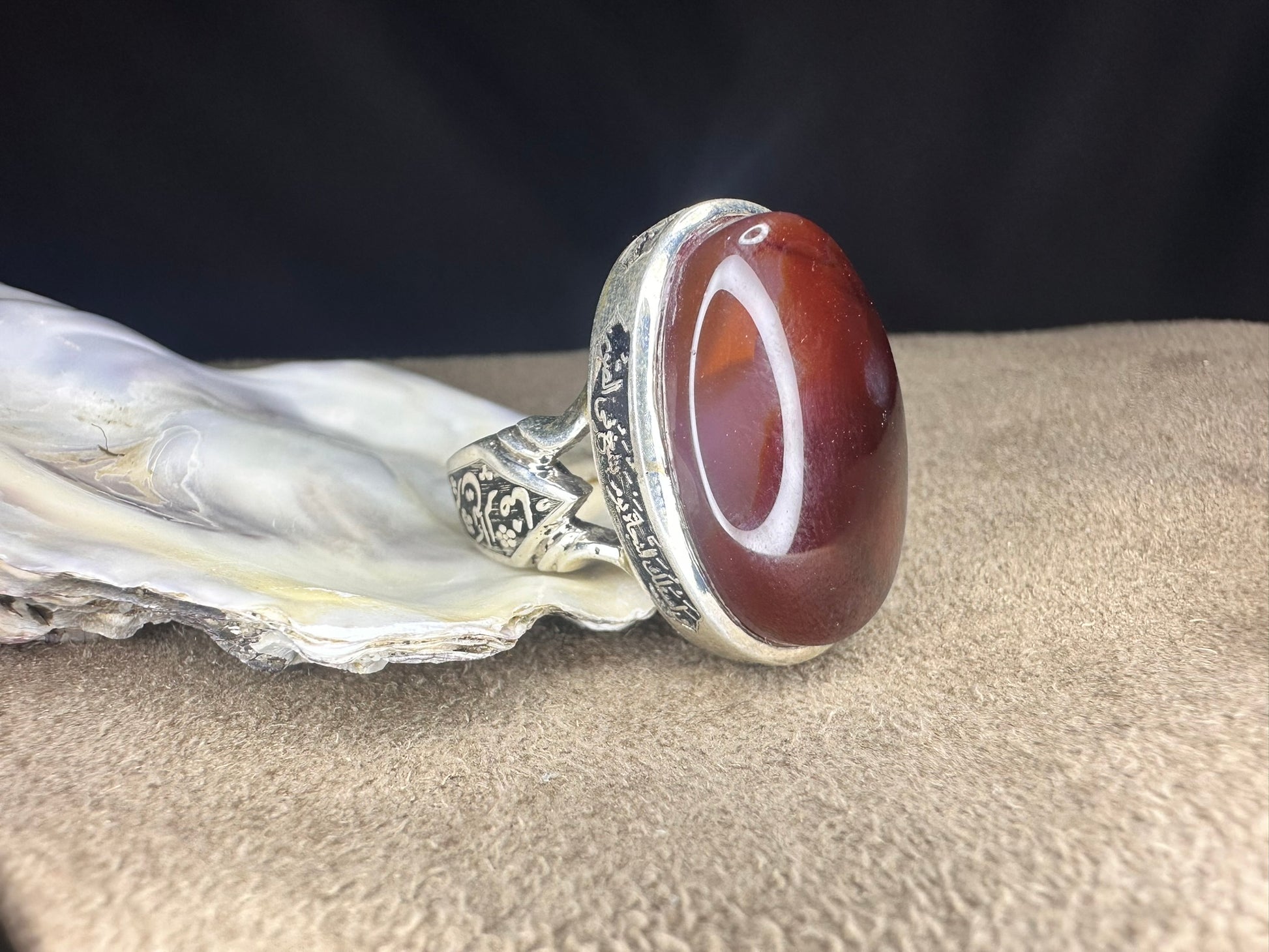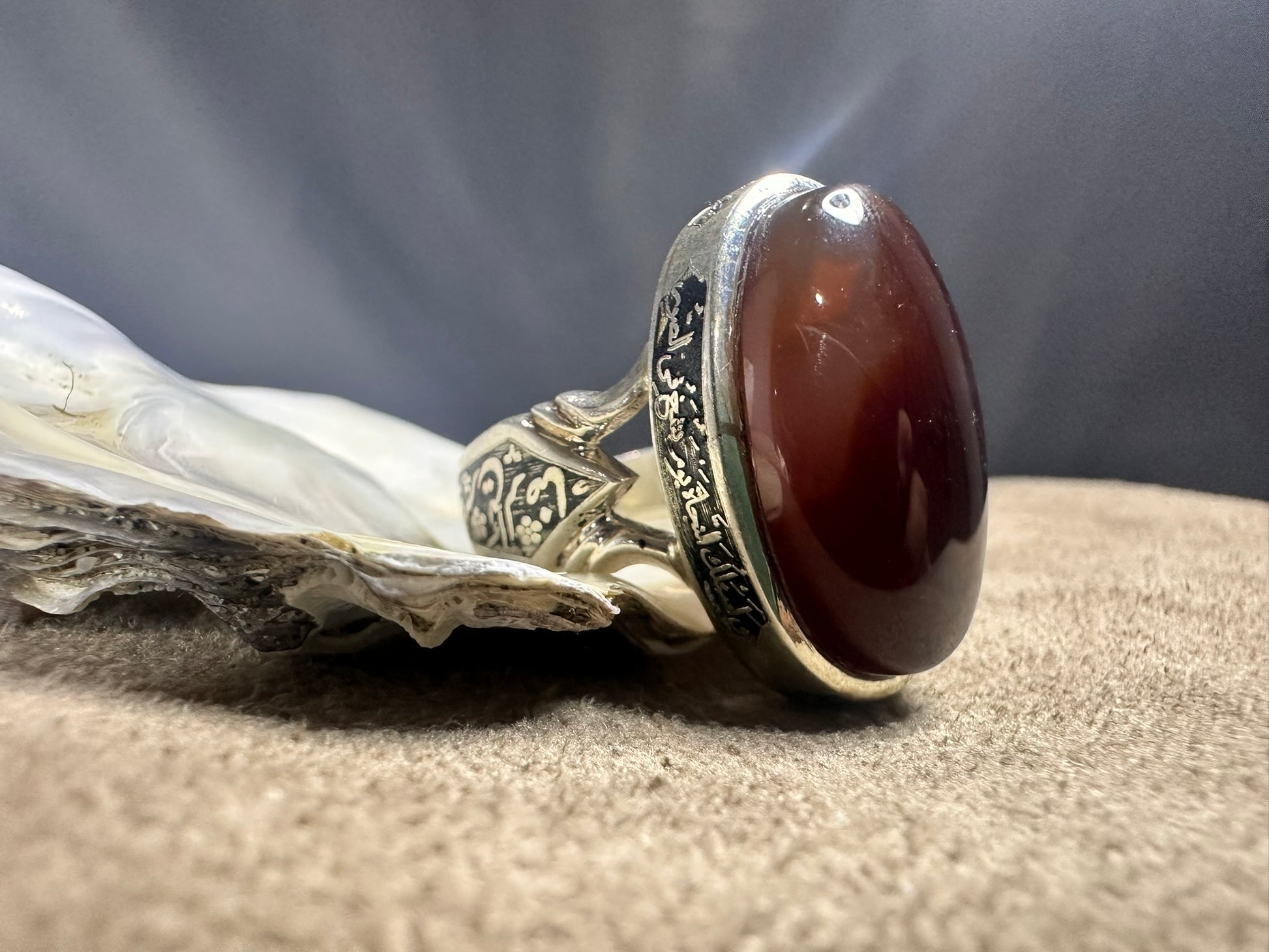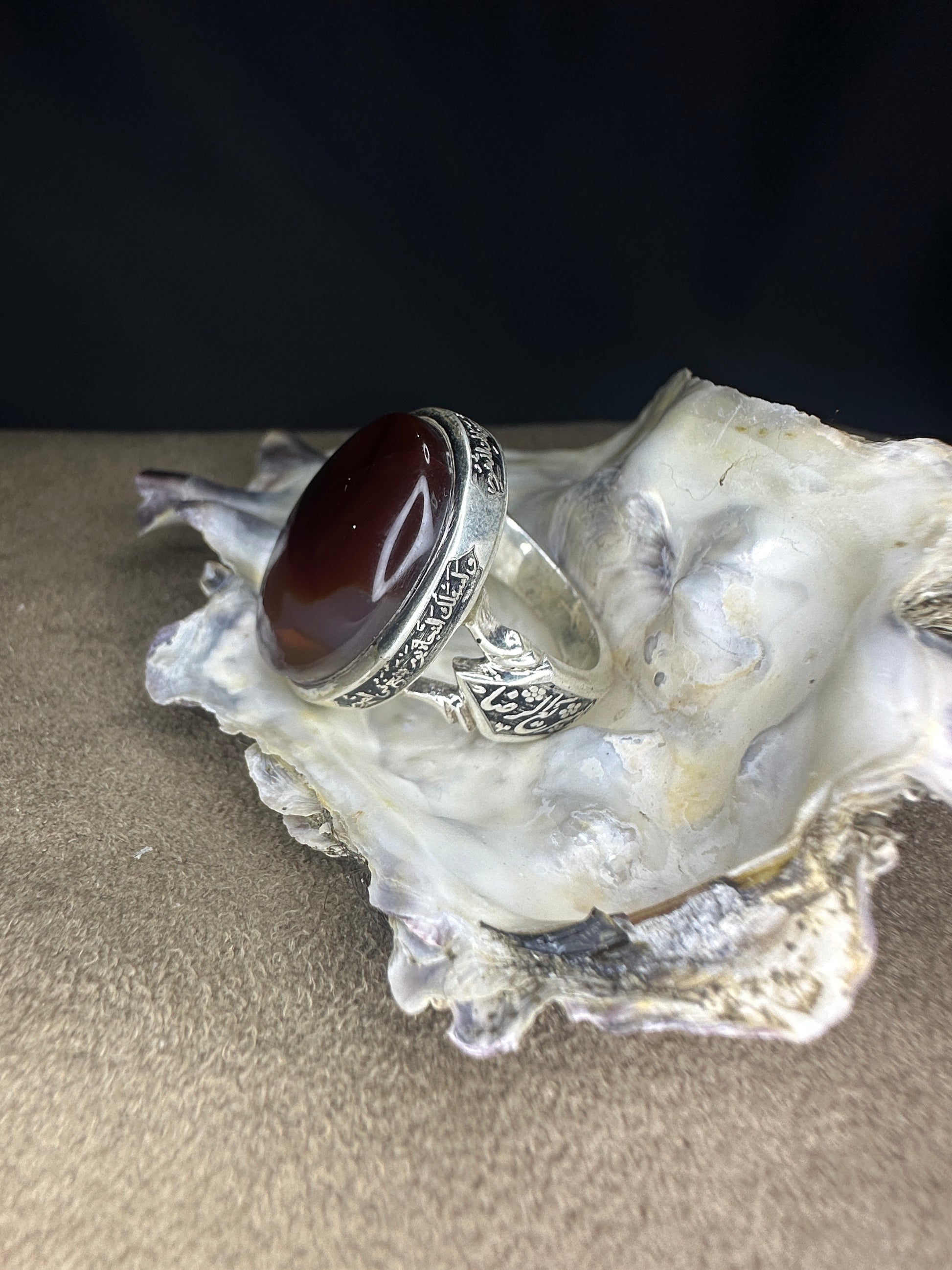 Elevate your style with our premium Yemeni Brown Aqeeq ring. Meticulously crafted from 925K sterling silver, this exquisite piece enhances your appearance with its elegant design. Make a statement with the expert craftsmanship and timeless beauty of our ring.