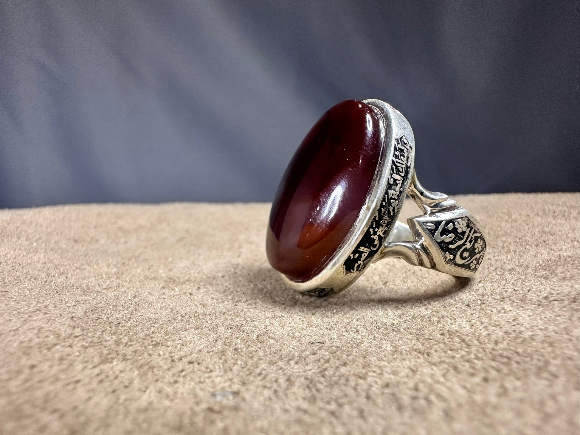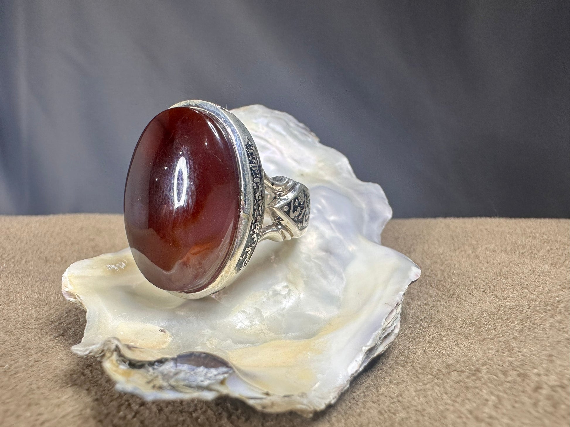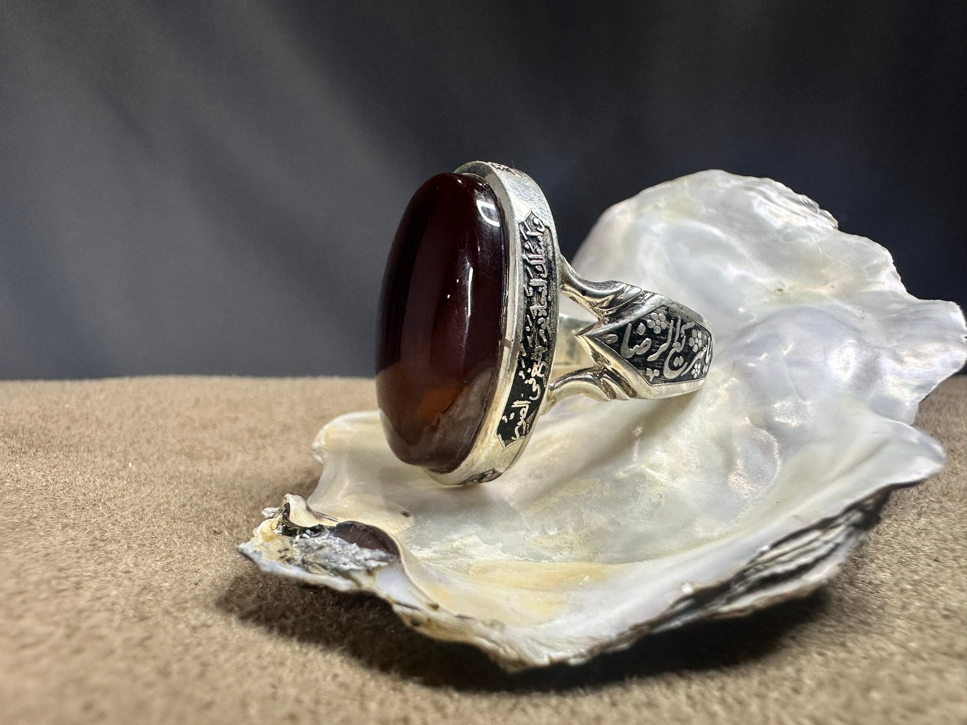 Elevate your style with our premium Yemeni Brown Aqeeq ring. Meticulously crafted from 925K sterling silver, this exquisite piece enhances your appearance with its elegant design. Make a statement with the expert craftsmanship and timeless beauty of our ring.