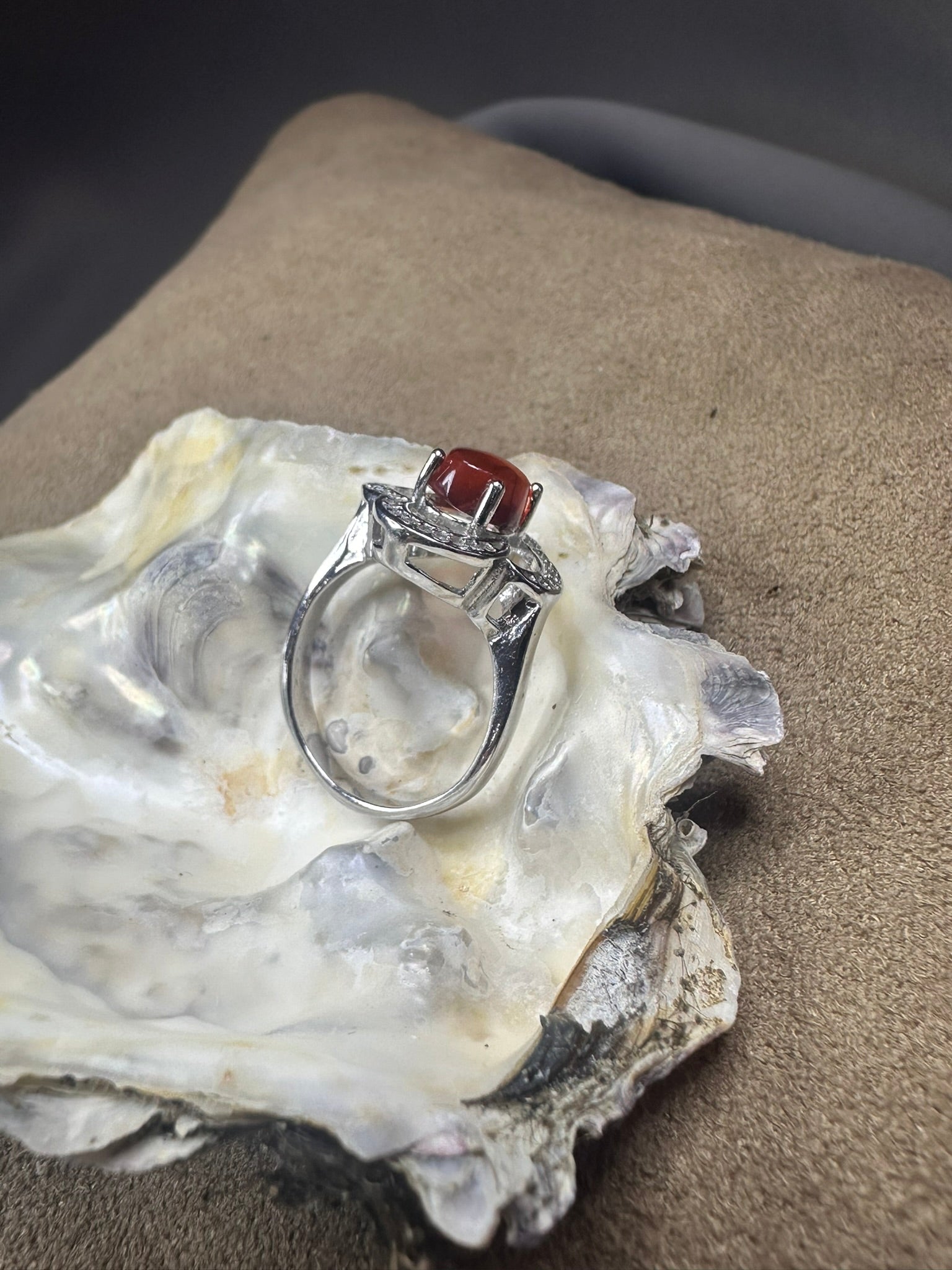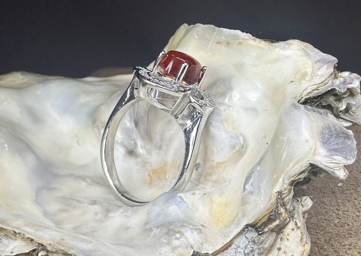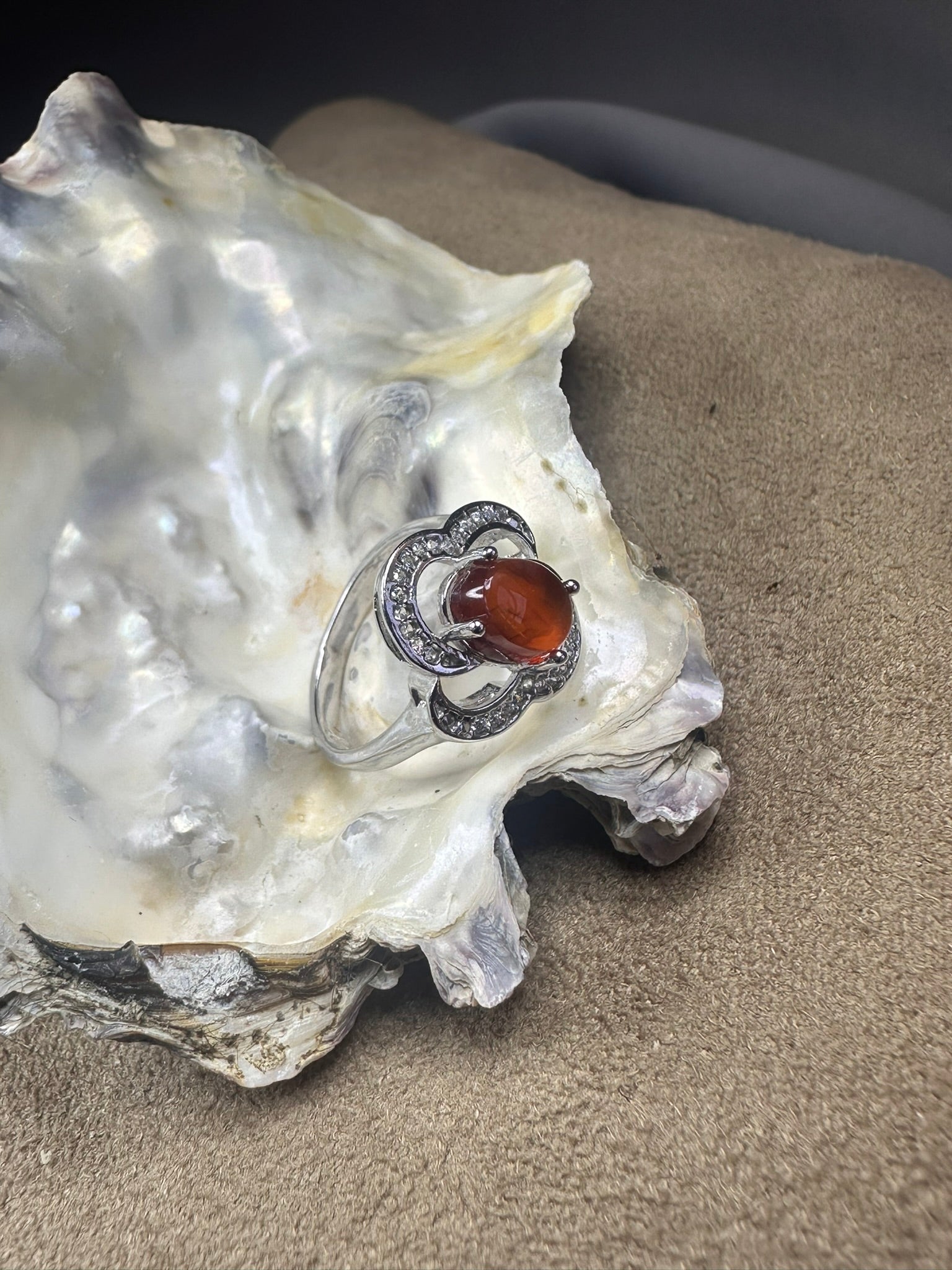 Yemeni Brown Aqeeq Sterling Silver Ring (Women)