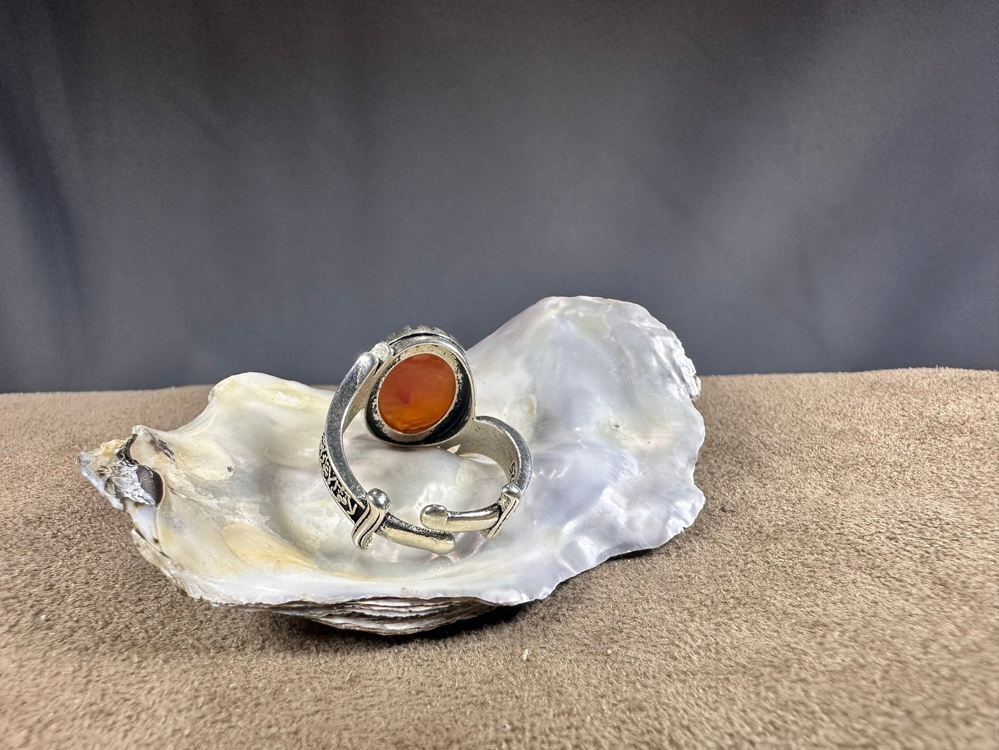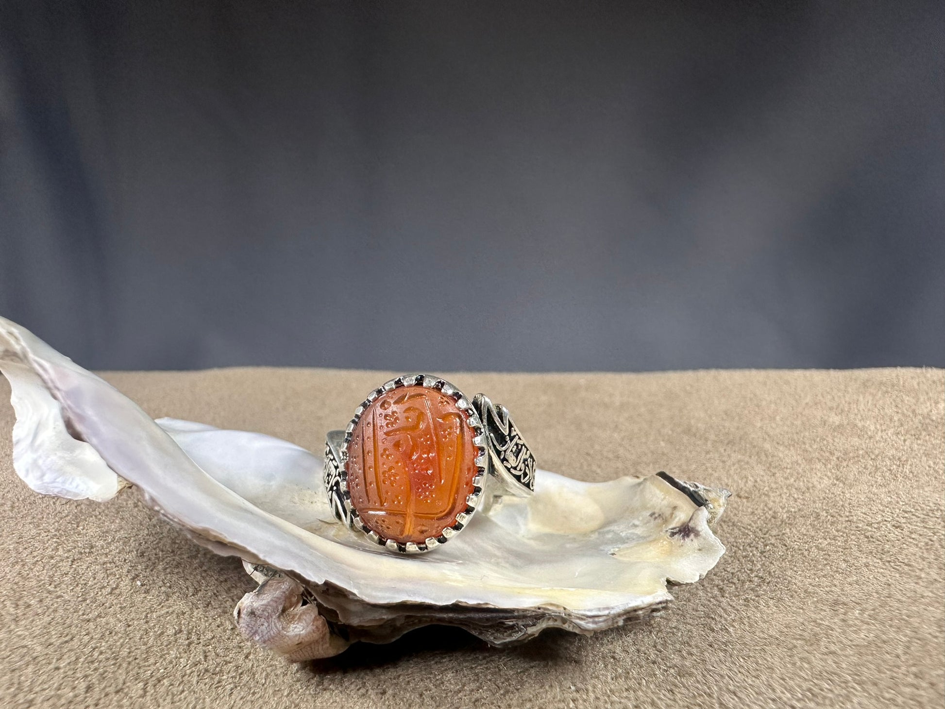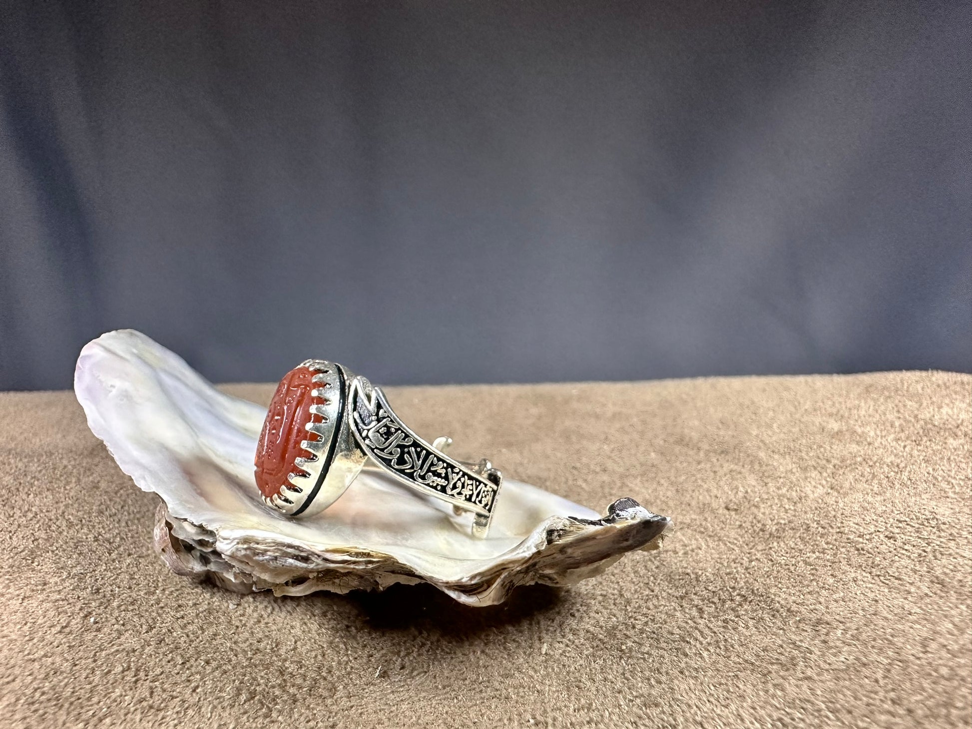 YEMENI ORANGE AQEEQ STERLING SILVER RING FOR MEN يا زينب