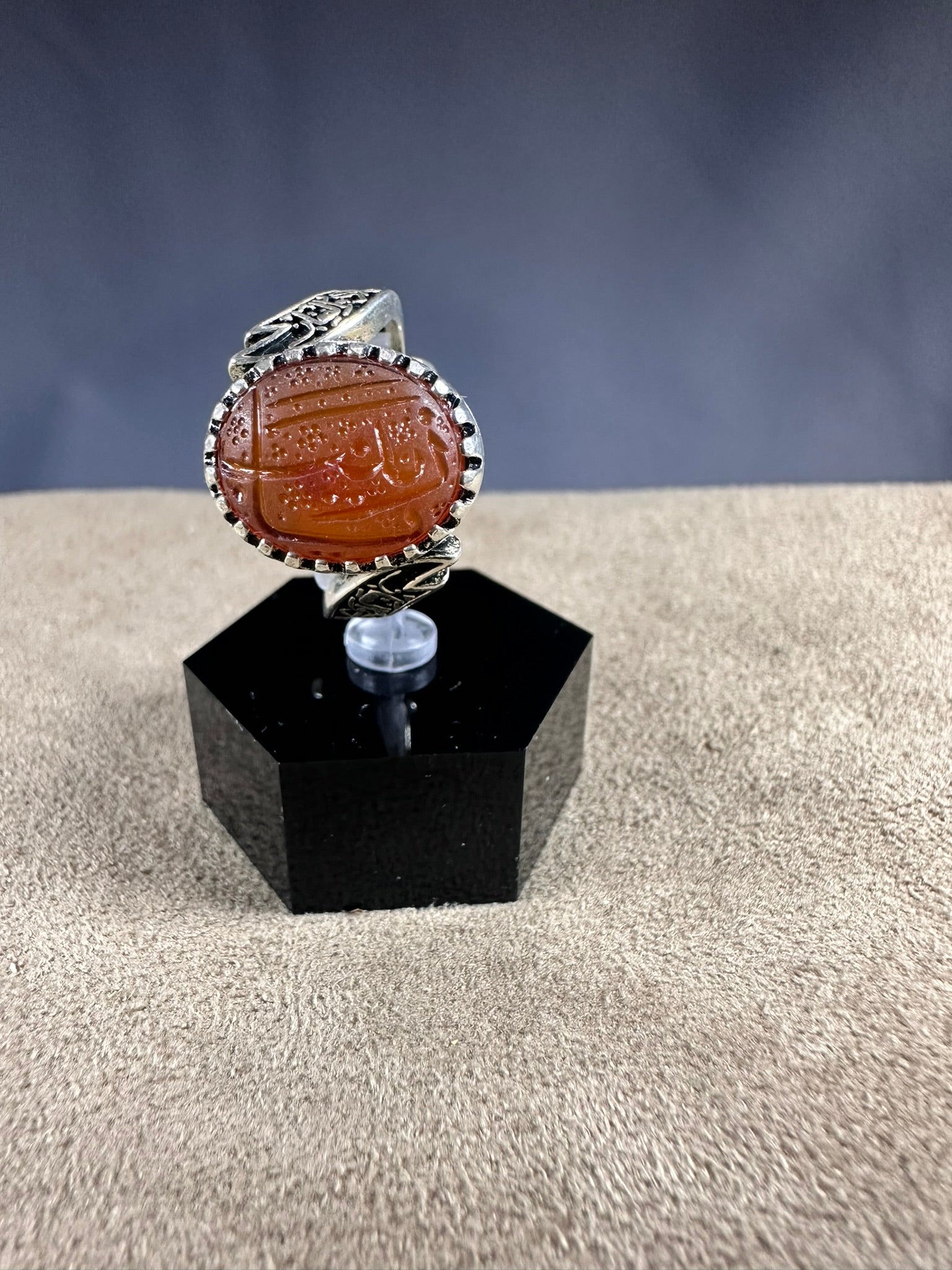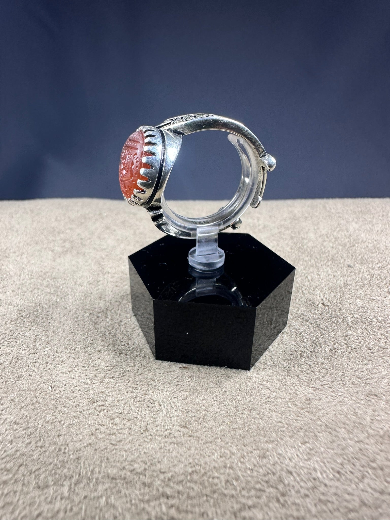 Elevate your style with our expertly crafted Yemeni ORANGE Aqeeq ring, made with 925K sterling silver for a timeless and elegant look. Perfect for men, this ring adds a touch of sophistication to any outfit. يا زينب