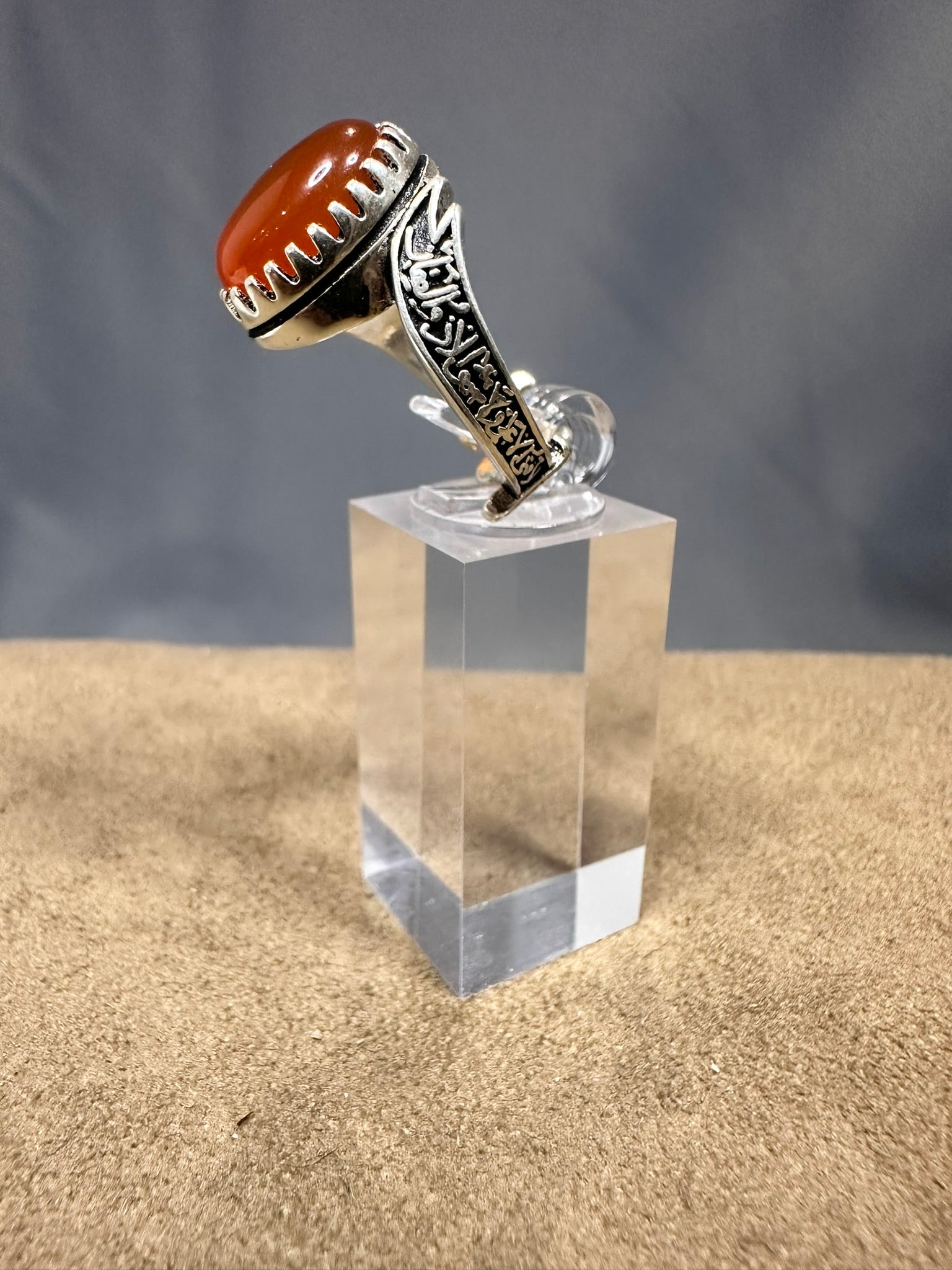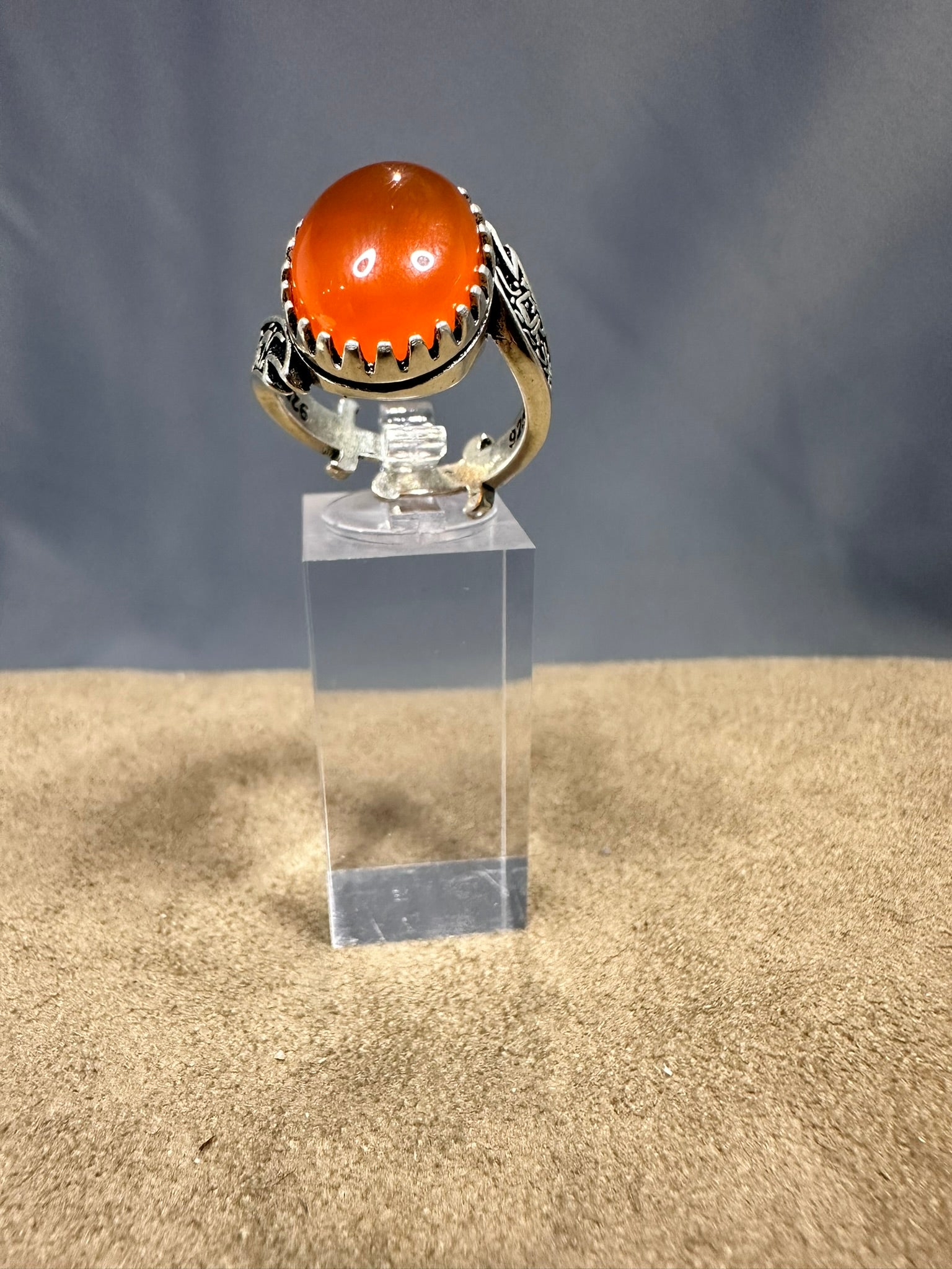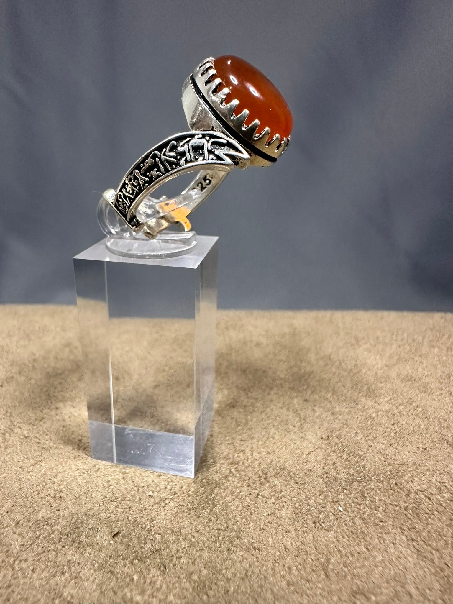 YEMENI ORANGE AQEEQ STERLING SILVER RING FOR MEN FREE SIZE